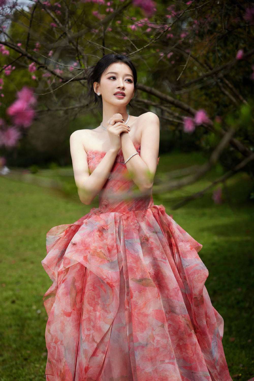 而在最近曝光的时尚大片里,孙怡又一次让这条红裙焕发了全新的贵气感。那条缎面材质的红白拼接吊带裙,垂坠感十足,恰到好处地修饰了她的曲线。短款设计勾勒出了她的小蛮腰和完美的腰臀比,显得既精致又性感。最引人注目的,是她颈间那条红宝石项链,饱满的红宝石在柔和的粉色背景下闪闪发光,瞬间将整套造型的奢华感拉升了一个档次。
