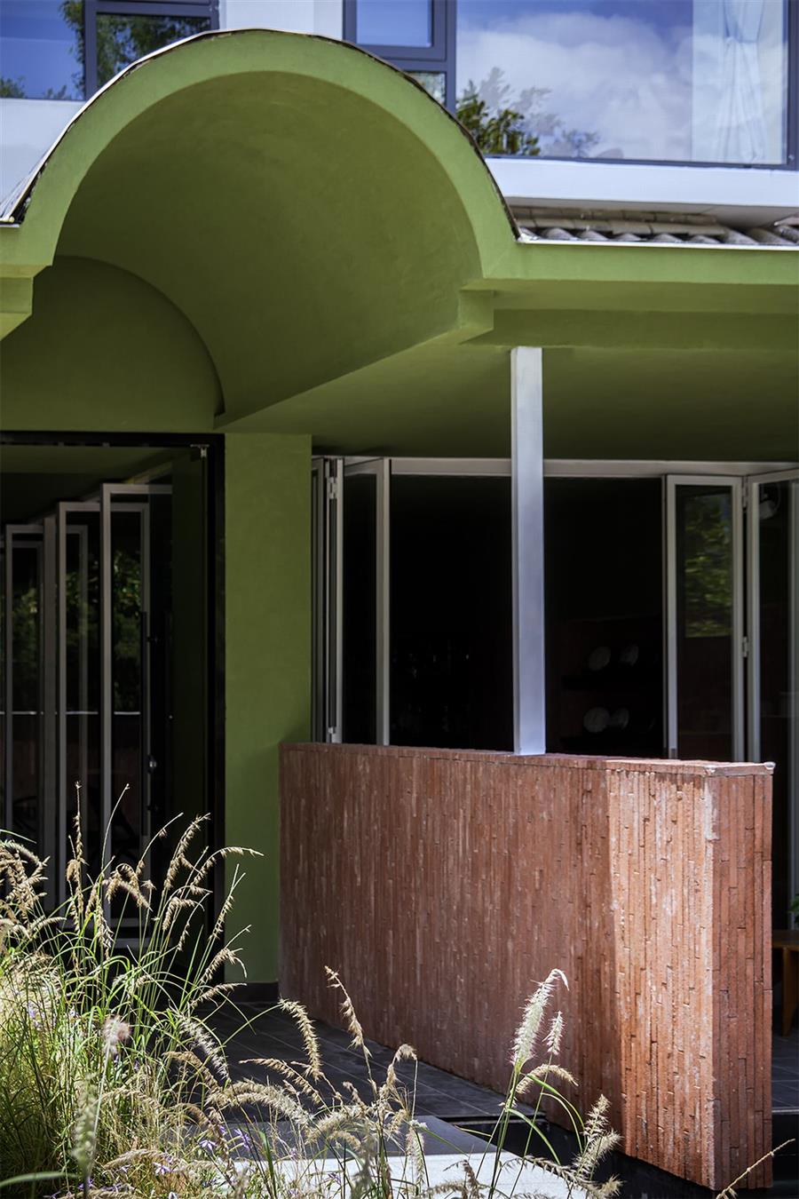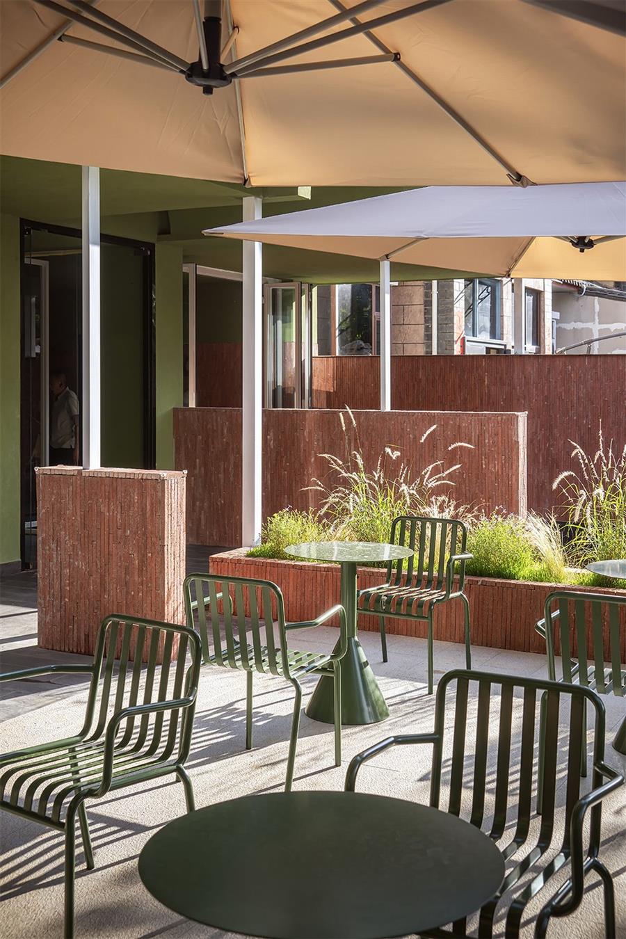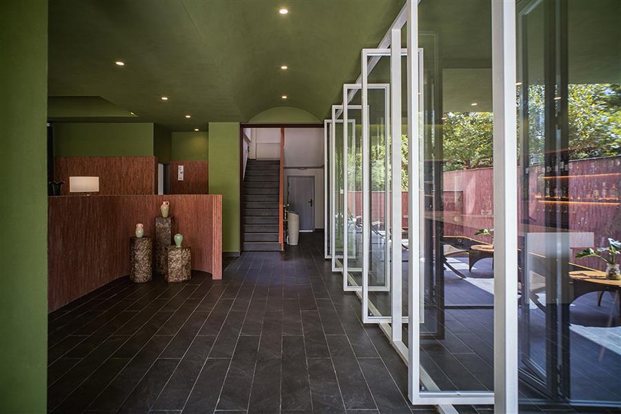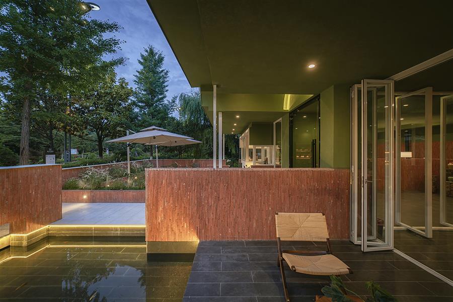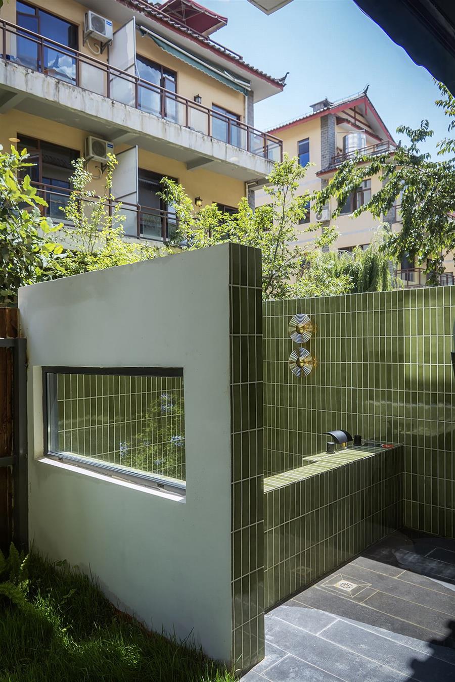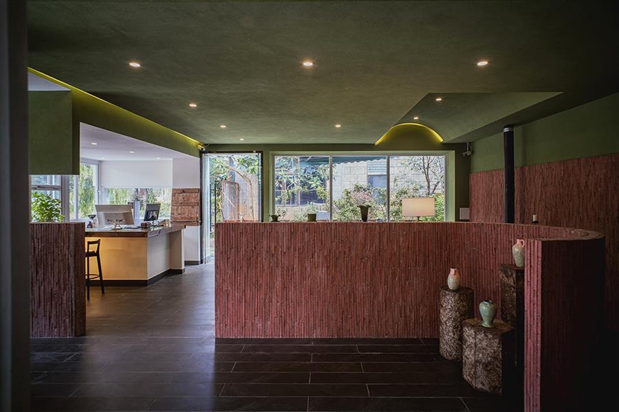 丽江从来不缺民宿,其中许多选择了如符号化民族风格、侘寂风格等。而我们的设计希望跳出同质化:顺着丽江多民族融合的城市底色,用减法改造重新定义度假体验,做一个既满足当下经营需求,又有独特记忆点的新型民宿。 减法改造:用“少”换“更好的体验” 觉廊山舍位于丽江束河古镇东侧民宿聚集带,原建筑为一栋已投入运营的民宿,内部紧凑地布置了19间客房,公共空间局促,体验单一。 我们选择主动做“减法”:把19间压缩为9间,通过合并小房间大幅扩大单房面积。这一根本性调整并非简单的数量减少,而是通过合并小房间提升单房面积与品质。减法的意义还在于将宝贵的空间面积让渡给公共区域与庭院体系。 一层公共区:尺度重构与动线整合 一层大堂设计改造的核心策略在于,将绝大多数面积从原有的客房中释放,仅保留一间套房,其余的部分将空间主权让渡于公共功能。面对如此开放的整体空间,设计难点在于如何避免空旷与混乱,精准营造舒适的尺度。我们通过“片段化矮墙”与多层次的空间划分策略,为不同行为模式的客人构建出既互不干扰又能共享开阔氛围的场域。 庭院中片墙的作用超越传统隔断:它将外部庭院的景深直接框引入室内,成为流动的视觉媒介,有效模糊建筑内外边界,以视线透引导感空间的丰富层次,使物理面积有限的公共区获得了视觉与心理上的双重通透感。 为最大化空间的体验,设计中还加入了弧形语言,与片墙的延伸逻辑形成呼应。考虑到增设员工房等功能需求,我们取消了原计划的挑高方案,转而采用“视觉顶升”策略——以连续流畅的圆弧吊顶引导视线向上延展,既解决功能矛盾,又优化了空间的竖向感知。入口玄关的弧形矮墙则精准组织了进入空间的初始动线:左转为入住前台与公共休闲区,直行去向客房,右转则通向茶室。这一小幅度的绕行路径,不仅强化了出入的仪式感,更在不影响大空间开放性的前提下,通过明晰的分流设计建立起空间秩序。 红色条石砌筑而成的片墙,作为核心设计语言,重新定义了区域间的柔性边界。从相对私密的独立茶座,到半开放的接待过渡区,再到完全面向庭院的外摆区,空间分区清晰而边界交融。墙体如同空间叙事的“导演”,不动声色地引导着视线流动与步伐转换,营造出“步移景异”的动态体验。 客房设计:基于场域条件的价值再造 在客房设计上,我们依托原有结构和景观条件,进行了更有差异化的设计。 依托结构调整房型:三层原有结构自带阁楼条件,我们保留2个房间的阁楼属性,做为亲子/家庭套房;另外2间则将空间归还给客房,形成更开阔的平层空间,以匹配不同客群的偏好。 利用景观进行升级:三层客房及二楼1间客房拥有直面玉龙雪山的稀缺景观视野,我们特意在这些高配置房间增设独立泡池,将天然景观优势直接转化为空间体验中最独特的部分。 色彩与材料:低成本跳出平庸感 为了跳出传统民宿的风格惯性,我们选择了红色和绿色作为空间主色,既跳出了灰调、木色的同质化,也不会让色彩显得杂乱突兀。 室内外片墙使用定制的红色半手工条石,是我们反复调试颜色后得到的惊喜:它是混凝土半手工压制而成,用天然矿物提取颜色,成本可控还自带自然手工质感,室内外可以连贯使用;施工也不需要刻意对缝,自然长短错落的拼接反而更有手工氛围,轻松跳出平庸感。 我们认为对于民宿改造,最棒的设计并不是天马行空的完美,而是顺着场地、成本、经营需求,做出最适合当下的选择。我们这次从破同质化出发,在有限条件里,既满足了业主多元经营的需求,也给住客带来了更舒适的入住体验,为丽江民宿提供了另一种可能性。