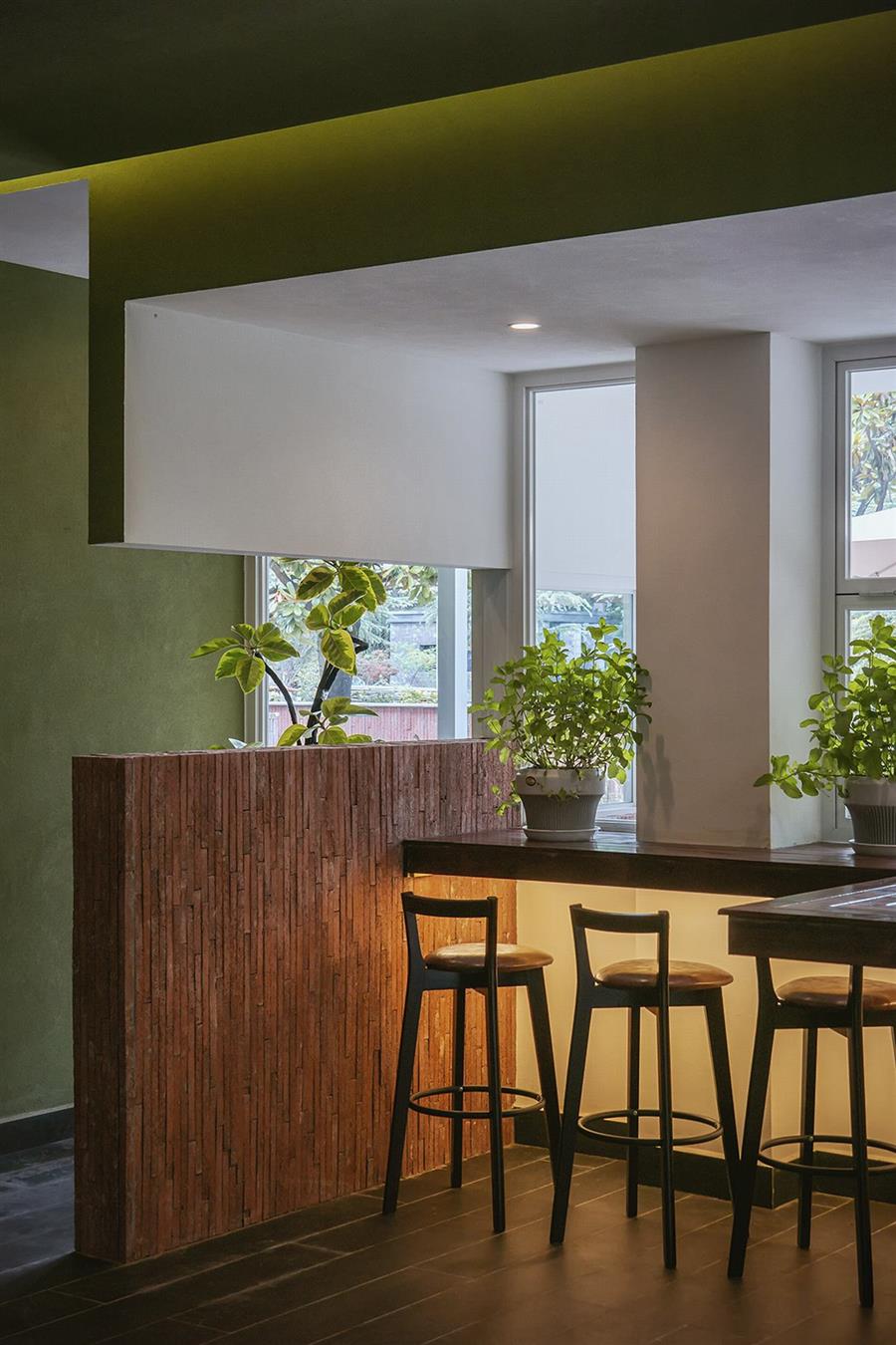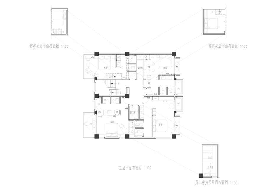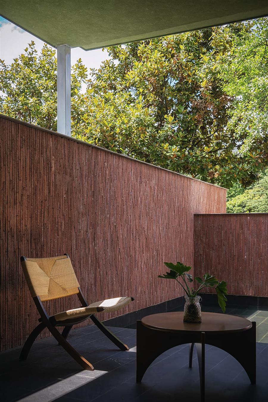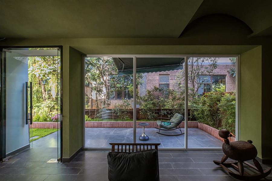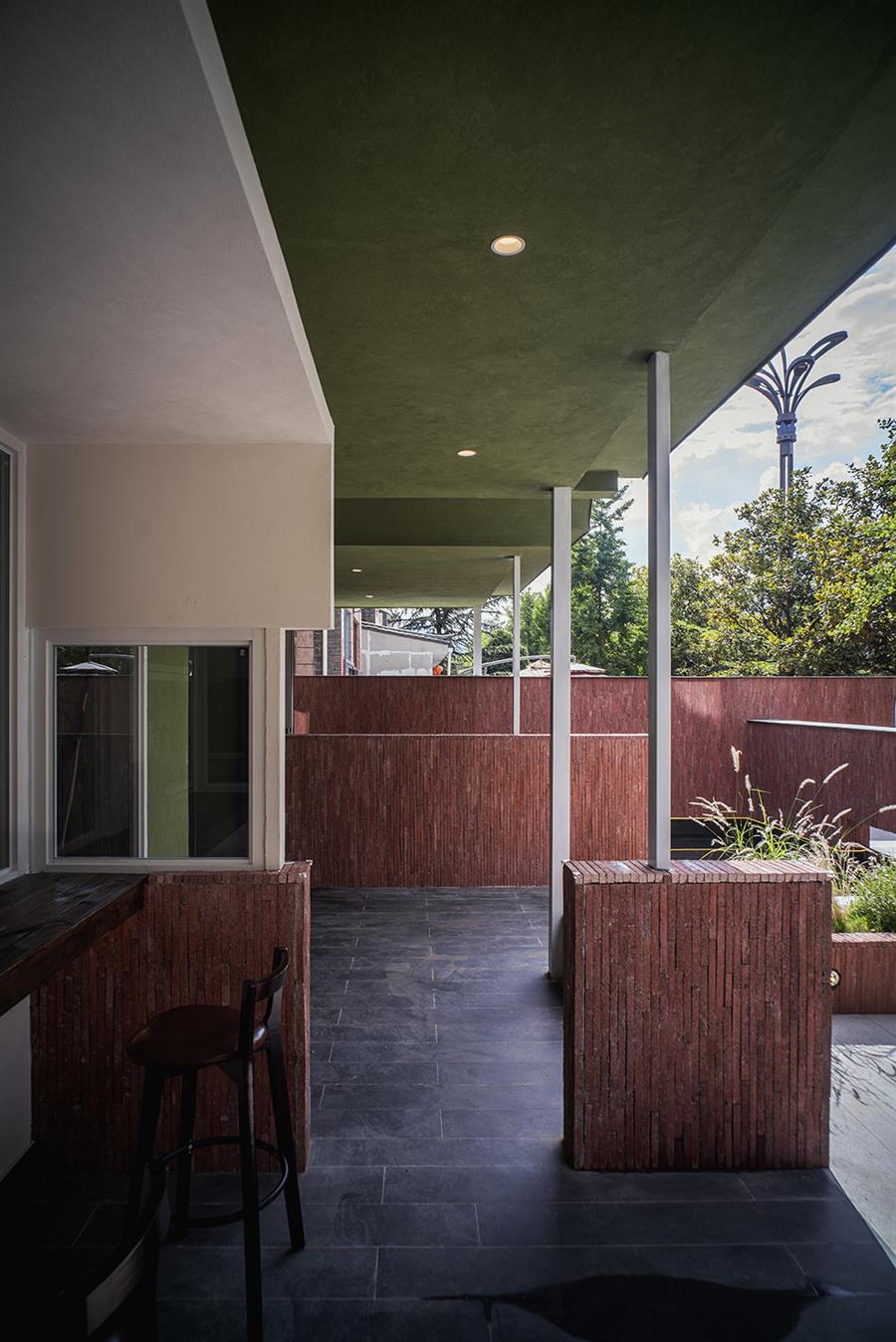 丽江从来不缺民宿,其中许多选择了如符号化民族风格、侘寂风格等。而我们的设计希望跳出同质化:顺着丽江多民族融合的城市底色,用减法改造重新定义度假体验,做一个既满足当下经营需求,又有独特记忆点的新型民宿。 减法改造:用“少”换“更好的体验” 觉廊山舍位于丽江束河古镇东侧民宿聚集带,原建筑为一栋已投入运营的民宿,内部紧凑地布置了19间客房,公共空间局促,体验单一。 我们选择主动做“减法”:把19间压缩为9间,通过合并小房间大幅扩大单房面积。这一根本性调整并非简单的数量减少,而是通过合并小房间提升单房面积与品质。减法的意义还在于将宝贵的空间面积让渡给公共区域与庭院体系。 一层公共区:尺度重构与动线整合 一层大堂设计改造的核心策略在于,将绝大多数面积从原有的客房中释放,仅保留一间套房,其余的部分将空间主权让渡于公共功能。面对如此开放的整体空间,设计难点在于如何避免空旷与混乱,精准营造舒适的尺度。我们通过“片段化矮墙”与多层次的空间划分策略,为不同行为模式的客人构建出既互不干扰又能共享开阔氛围的场域。 庭院中片墙的作用超越传统隔断:它将外部庭院的景深直接框引入室内,成为流动的视觉媒介,有效模糊建筑内外边界,以视线透引导感空间的丰富层次,使物理面积有限的公共区获得了视觉与心理上的双重通透感。 为最大化空间的体验,设计中还加入了弧形语言,与片墙的延伸逻辑形成呼应。考虑到增设员工房等功能需求,我们取消了原计划的挑高方案,转而采用“视觉顶升”策略——以连续流畅的圆弧吊顶引导视线向上延展,既解决功能矛盾,又优化了空间的竖向感知。入口玄关的弧形矮墙则精准组织了进入空间的初始动线:左转为入住前台与公共休闲区,直行去向客房,右转则通向茶室。这一小幅度的绕行路径,不仅强化了出入的仪式感,更在不影响大空间开放性的前提下,通过明晰的分流设计建立起空间秩序。 红色条石砌筑而成的片墙,作为核心设计语言,重新定义了区域间的柔性边界。从相对私密的独立茶座,到半开放的接待过渡区,再到完全面向庭院的外摆区,空间分区清晰而边界交融。墙体如同空间叙事的“导演”,不动声色地引导着视线流动与步伐转换,营造出“步移景异”的动态体验。 客房设计:基于场域条件的价值再造 在客房设计上,我们依托原有结构和景观条件,进行了更有差异化的设计。 依托结构调整房型:三层原有结构自带阁楼条件,我们保留2个房间的阁楼属性,做为亲子/家庭套房;另外2间则将空间归还给客房,形成更开阔的平层空间,以匹配不同客群的偏好。 利用景观进行升级:三层客房及二楼1间客房拥有直面玉龙雪山的稀缺景观视野,我们特意在这些高配置房间增设独立泡池,将天然景观优势直接转化为空间体验中最独特的部分。 色彩与材料:低成本跳出平庸感 为了跳出传统民宿的风格惯性,我们选择了红色和绿色作为空间主色,既跳出了灰调、木色的同质化,也不会让色彩显得杂乱突兀。 室内外片墙使用定制的红色半手工条石,是我们反复调试颜色后得到的惊喜:它是混凝土半手工压制而成,用天然矿物提取颜色,成本可控还自带自然手工质感,室内外可以连贯使用;施工也不需要刻意对缝,自然长短错落的拼接反而更有手工氛围,轻松跳出平庸感。 我们认为对于民宿改造,最棒的设计并不是天马行空的完美,而是顺着场地、成本、经营需求,做出最适合当下的选择。我们这次从破同质化出发,在有限条件里,既满足了业主多元经营的需求,也给住客带来了更舒适的入住体验,为丽江民宿提供了另一种可能性。