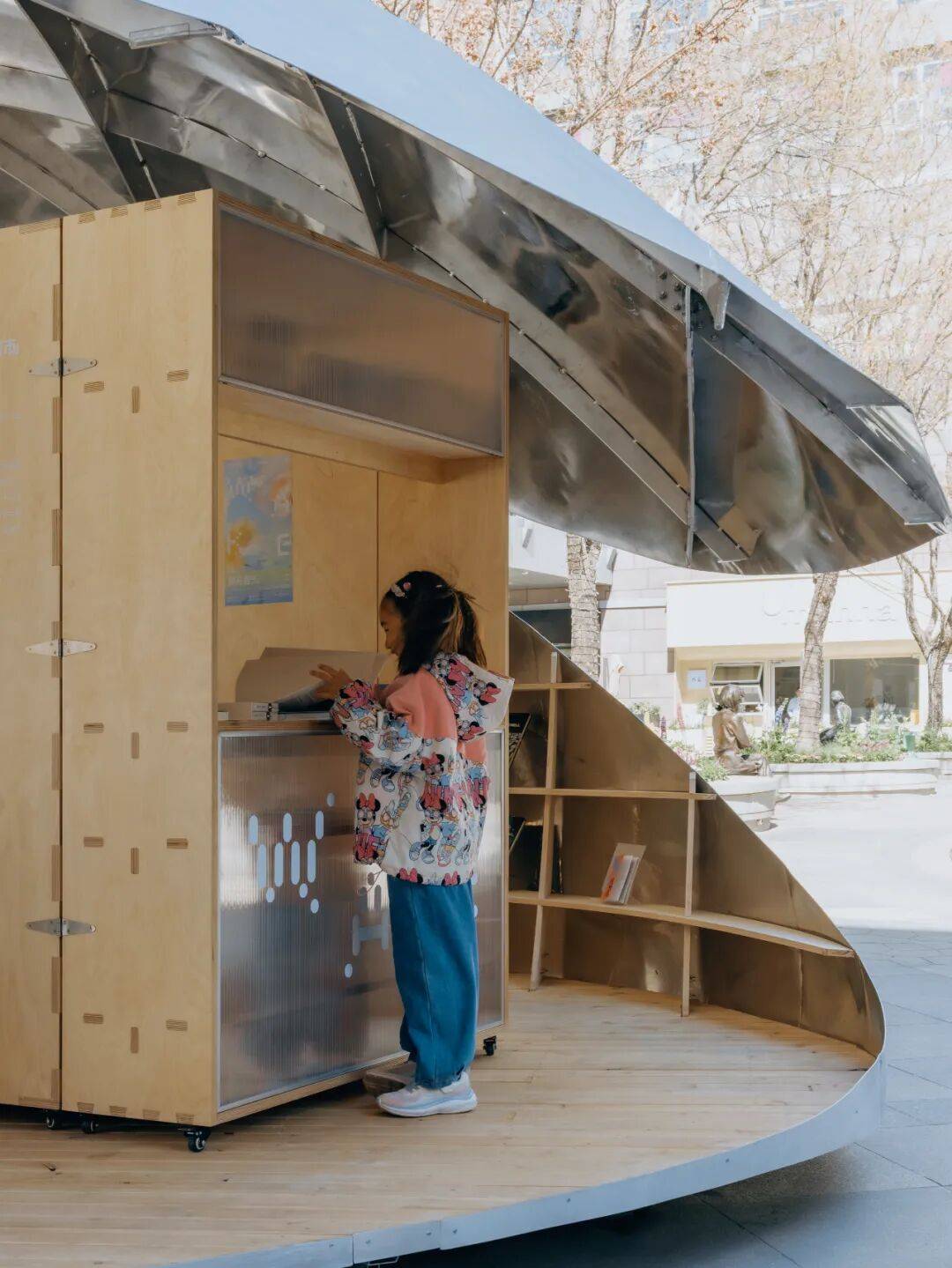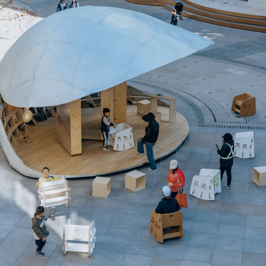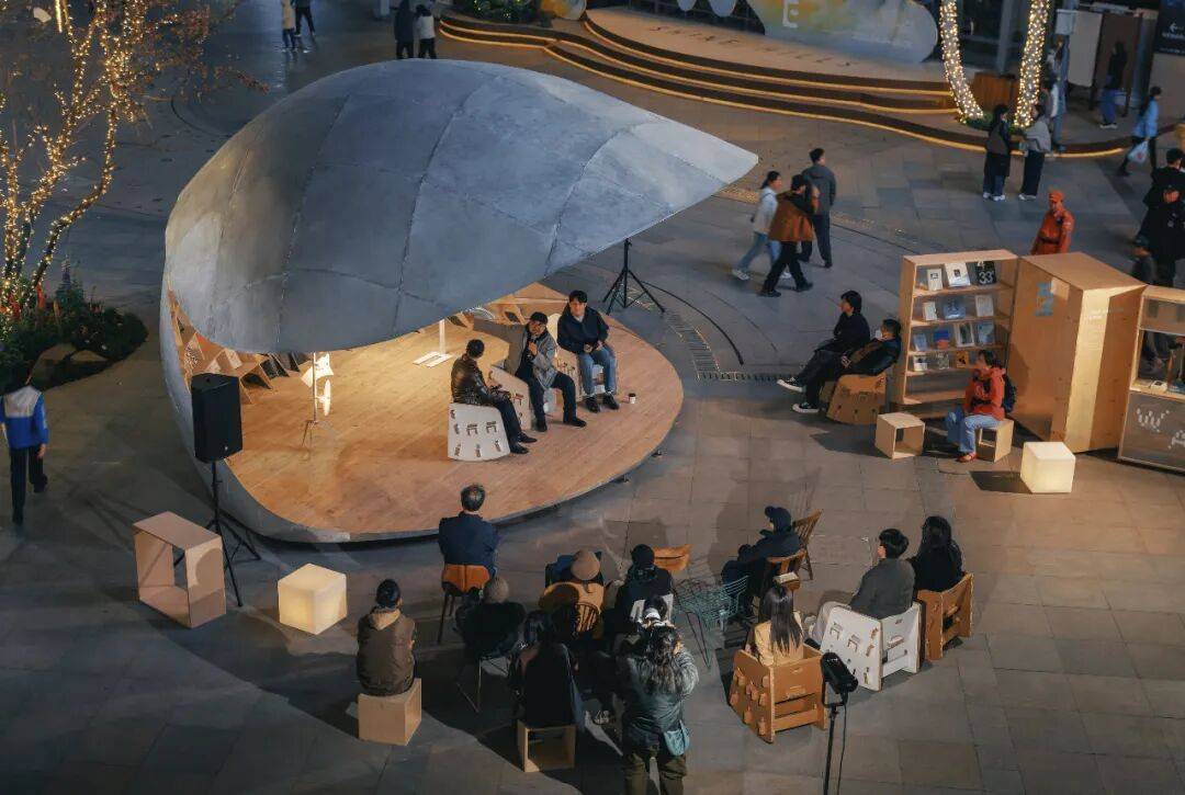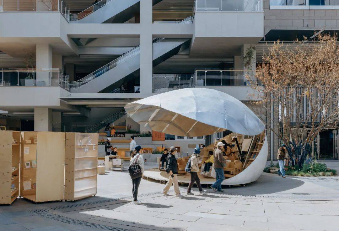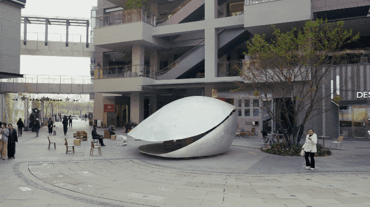贝壳书屋以轻盈的壳体、灵活的开合与精密的技术,重新定义了社区商业区的公共空间。它不仅是阅读场所,更是一个会呼吸、会变化的“活态装置”,在广场中央持续生成新的公共关系。正如设计师所言:“重要的不是固定形象,而是通过变化让空间参与社区生活。”