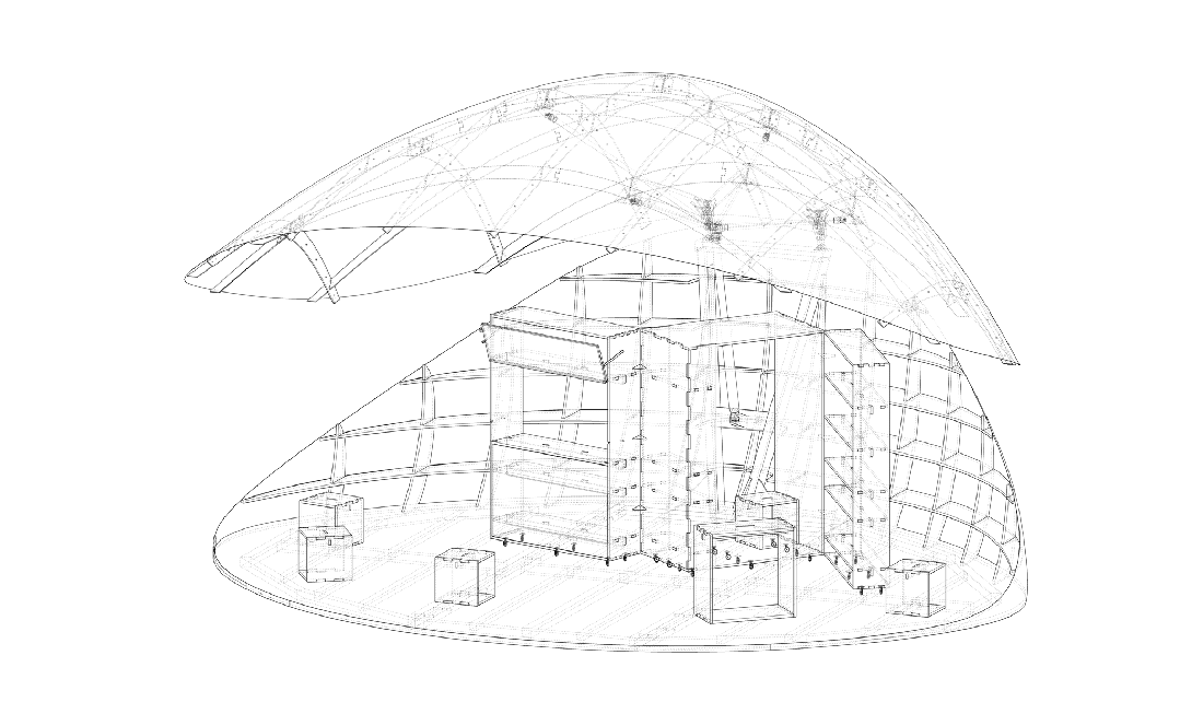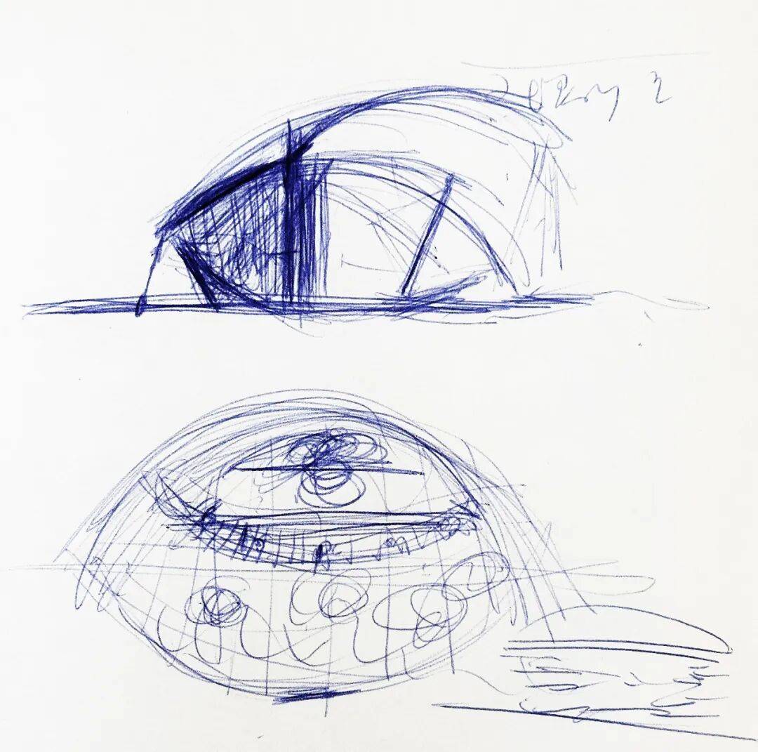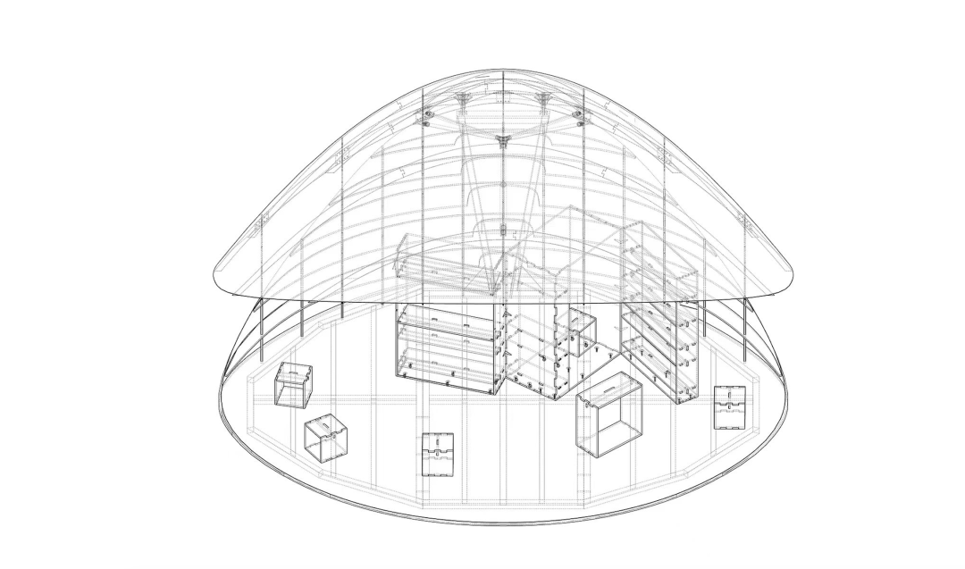规模:屋顶展开面积43㎡,长轴8米、短轴6米,内部净高2.5-4.2米,可容纳多人停留;