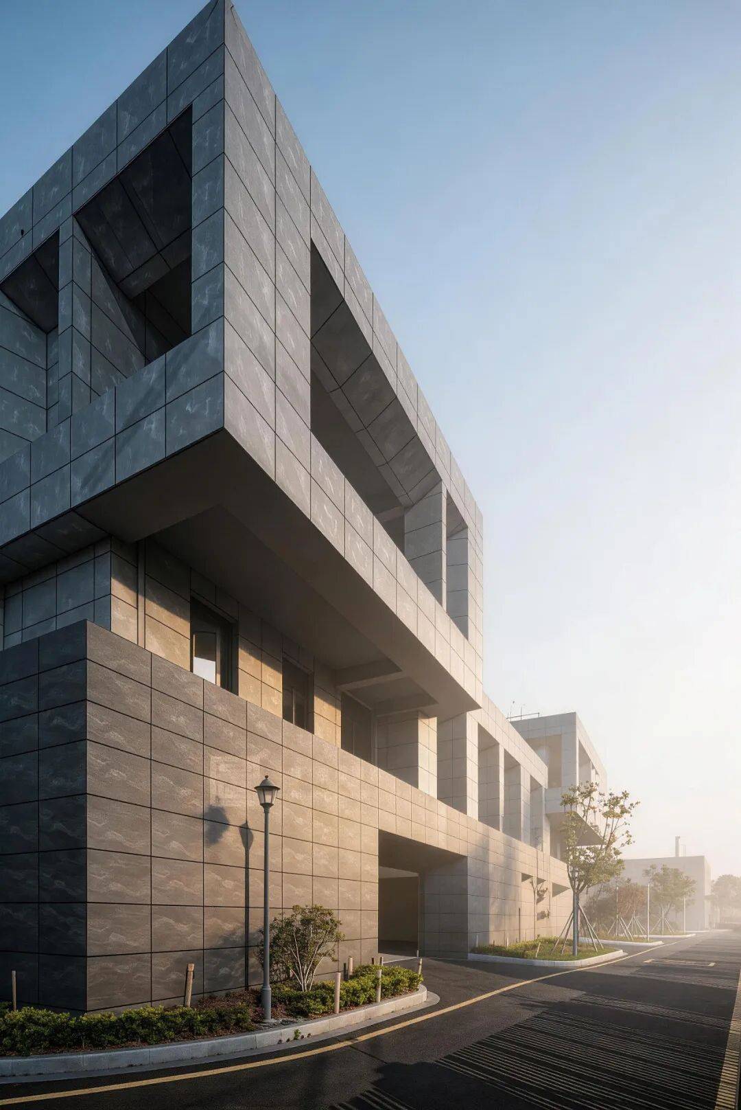 文化符号:外墙定制书法笔触或水波纹纹理的发泡陶瓷板,在阳光下形成细腻光影,赋予工业建筑江南地域文化的“表情”。