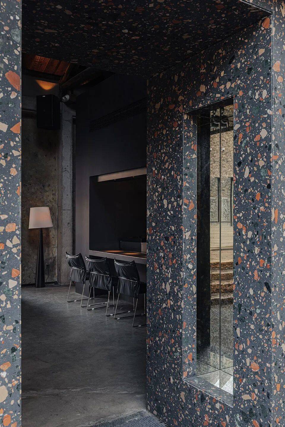 入口:彩色骨料水磨石成为新旧交替的过渡介质,既保留时代记忆又充满跳跃感。