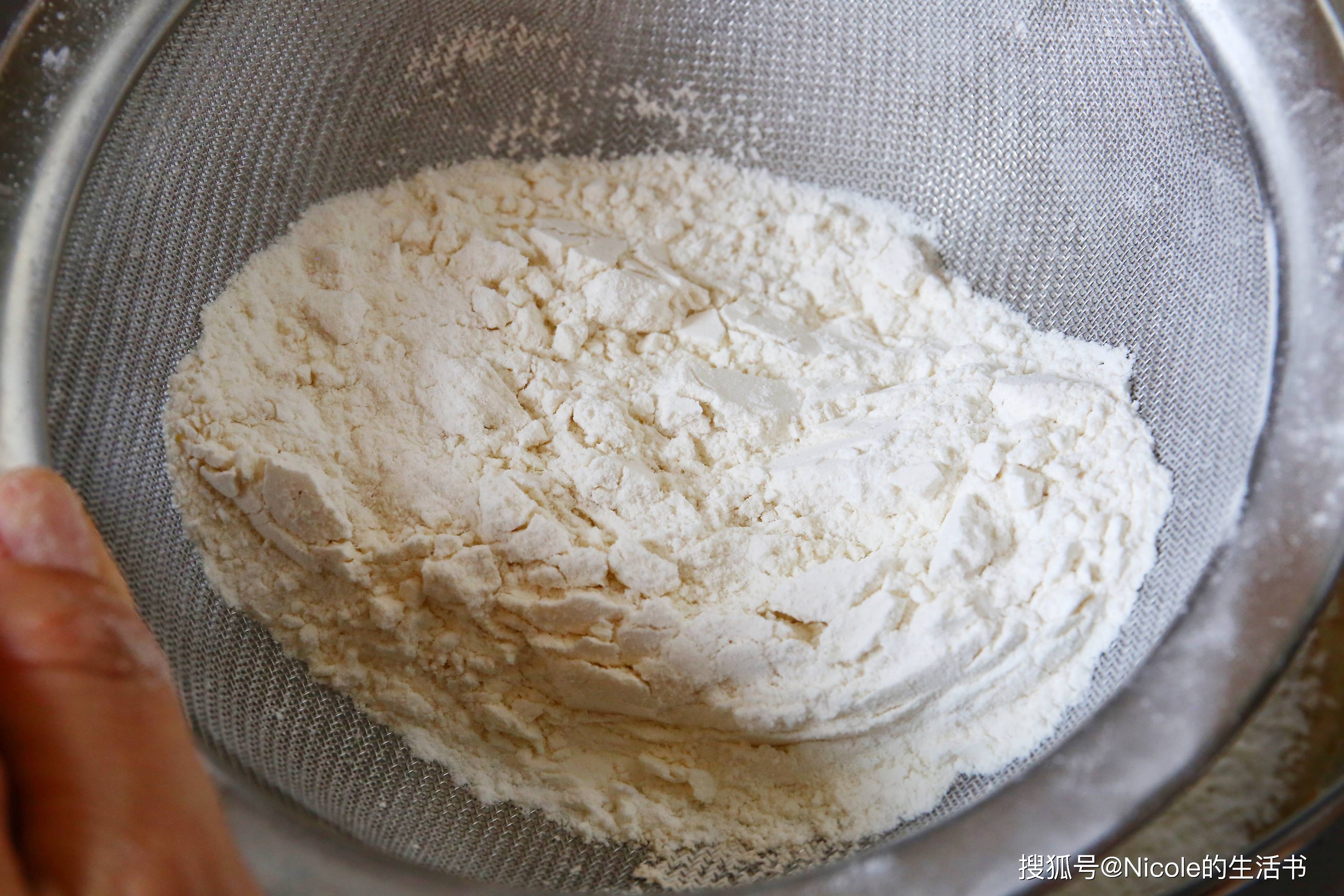 7、一起筛入蛋奶糊中;