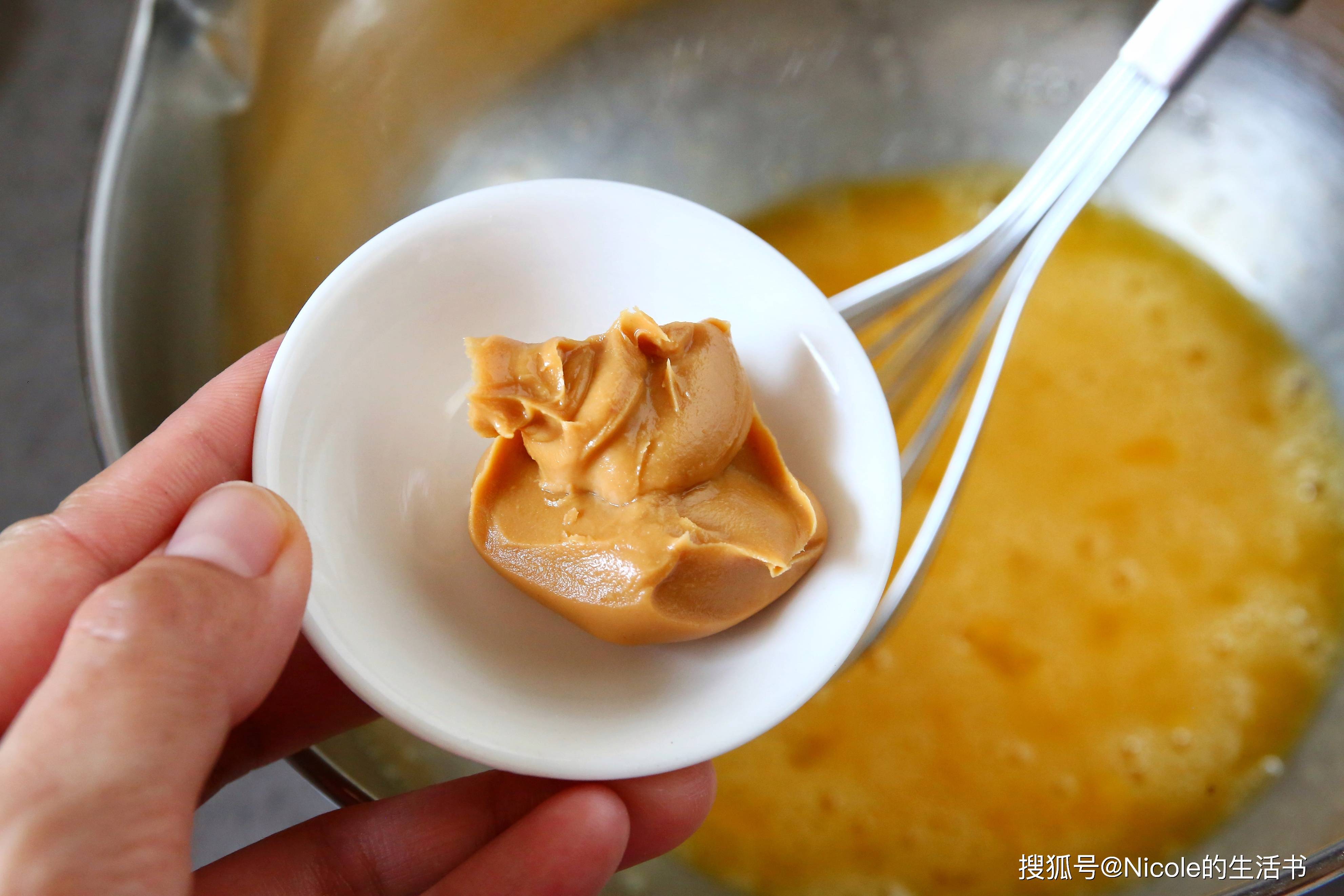 3. 花生酱混合:加入花生酱,搅拌均匀。