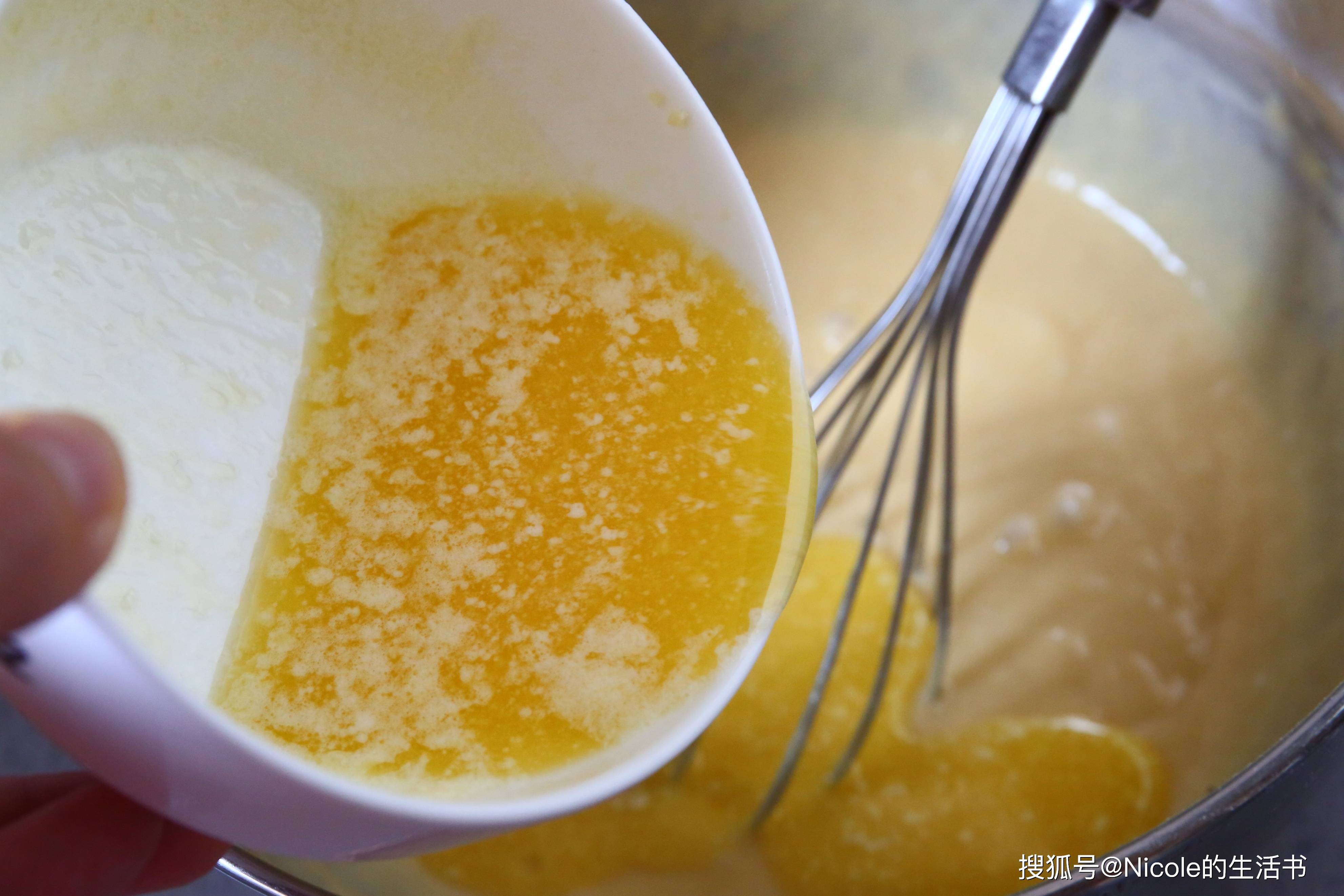 黄油需提前融化,方便和面糊搅拌均匀
