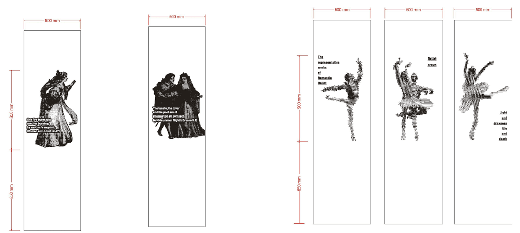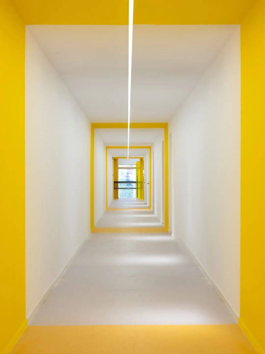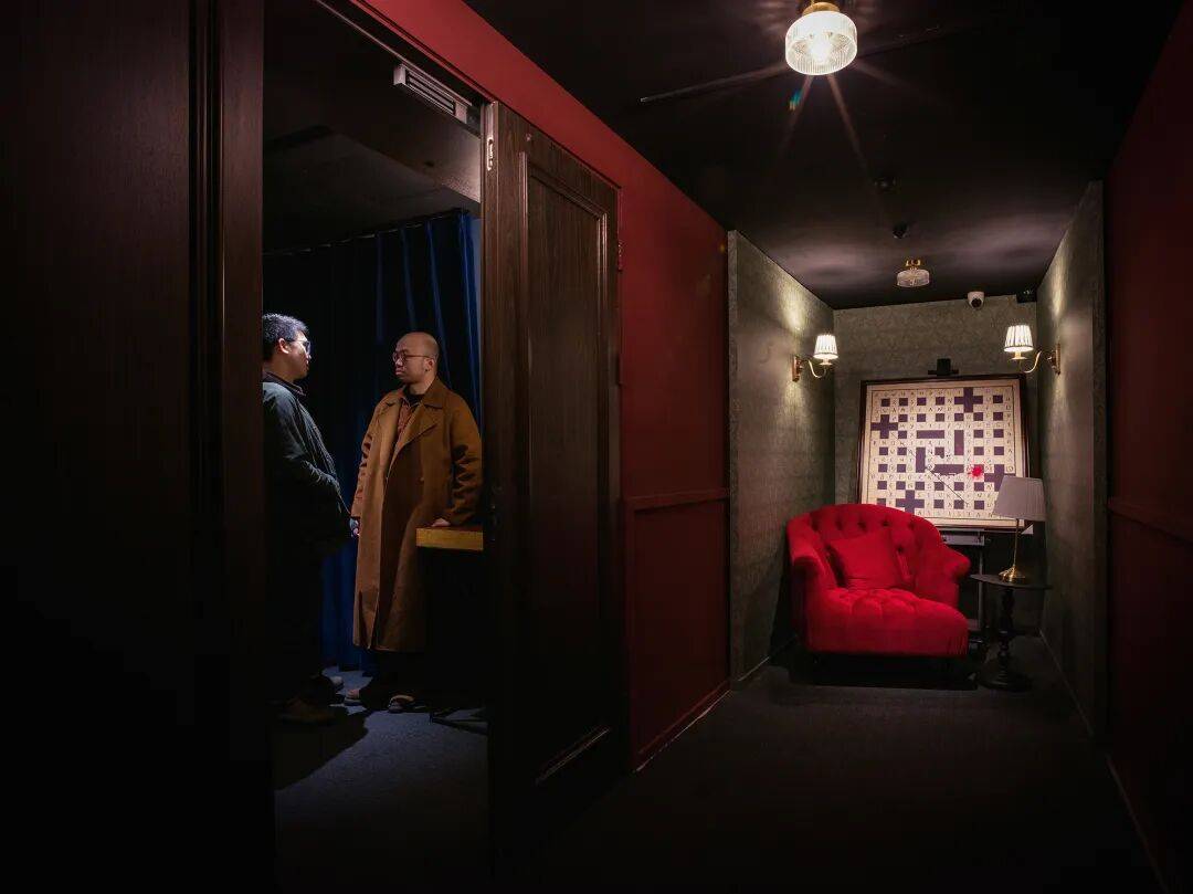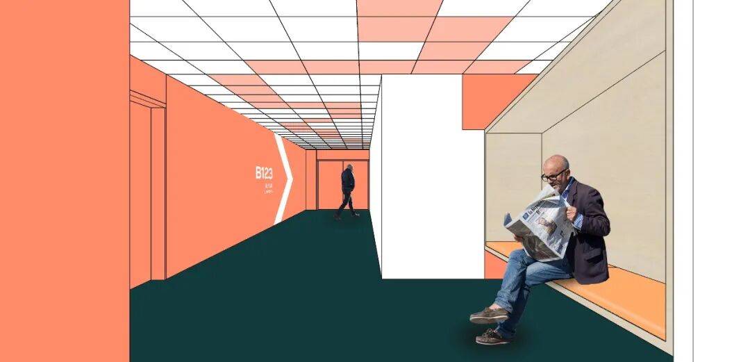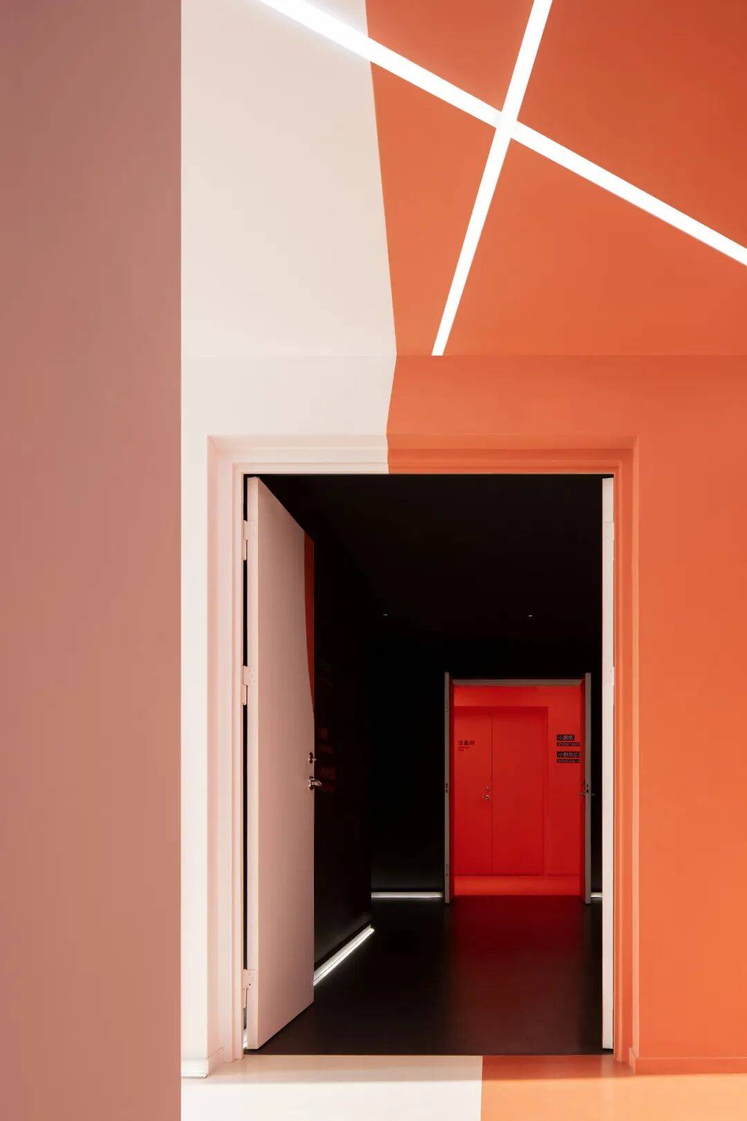 深灰通道 + 明亮展陈区,明暗对比,如 “剧院橱窗”;