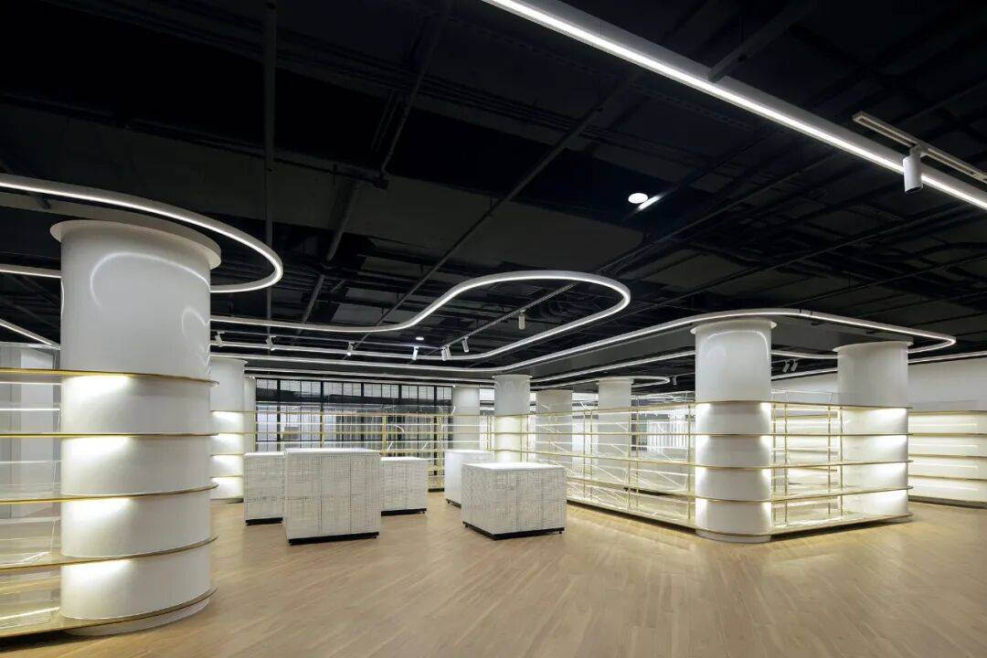 语言:弧形、曲线、光带、半透隔断,强化 “剧场感” 与流动性。