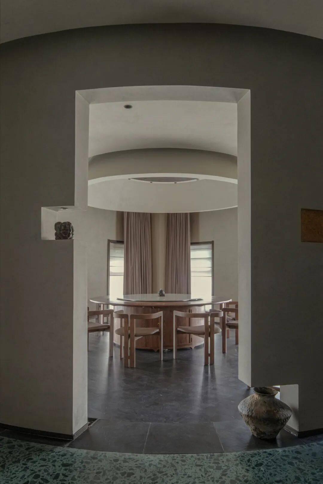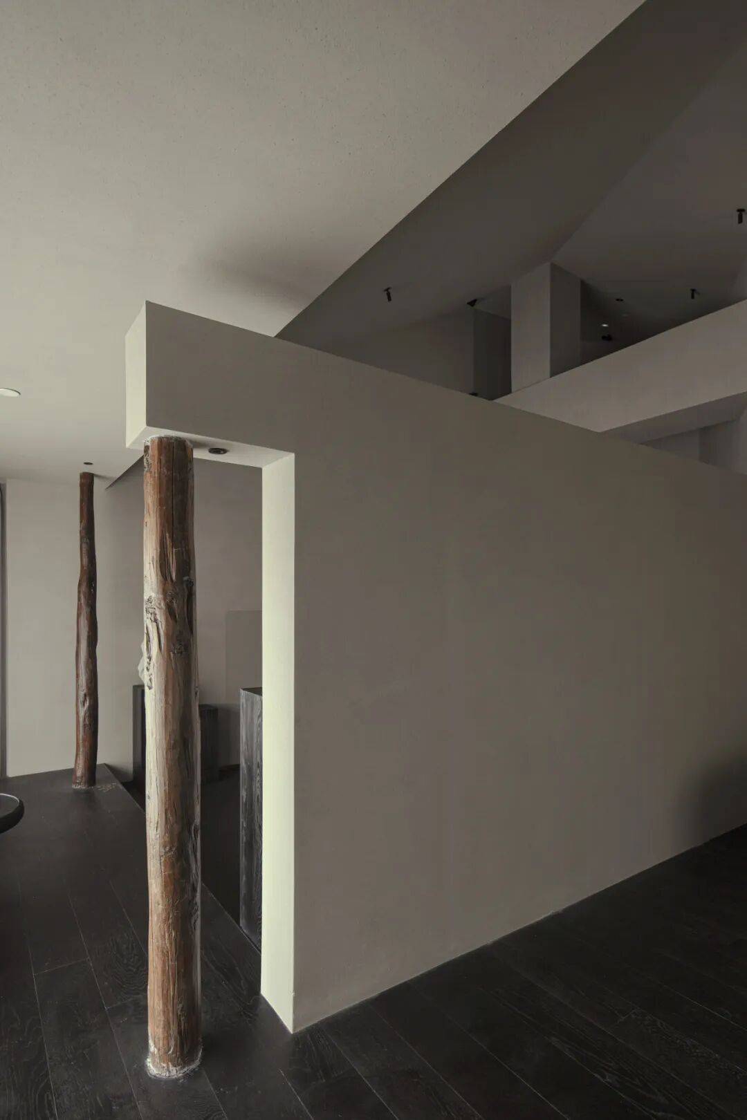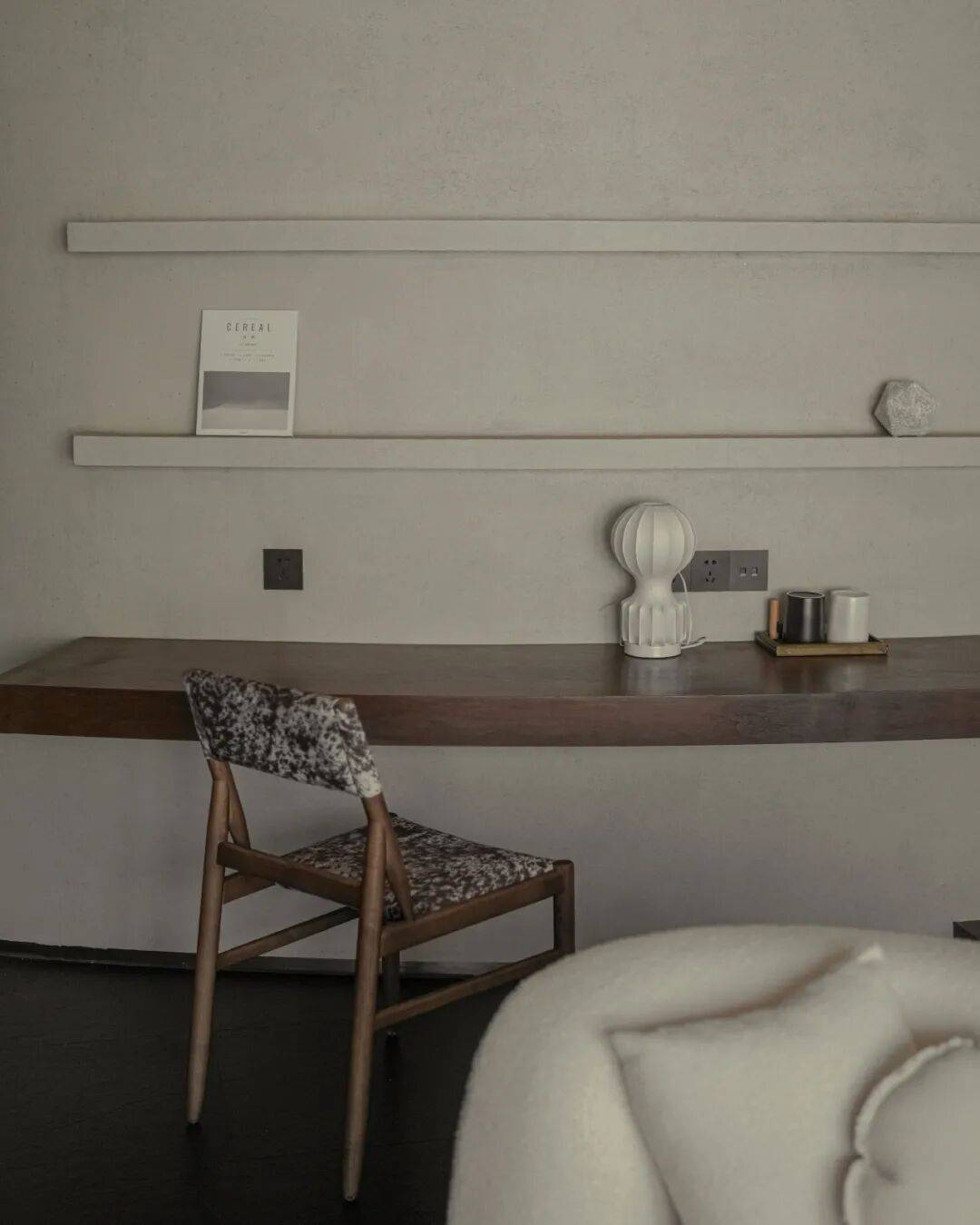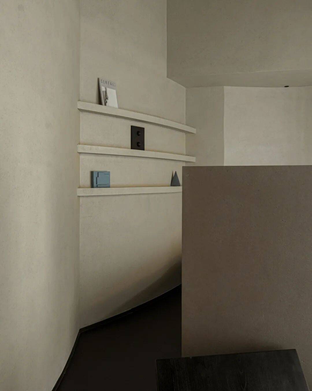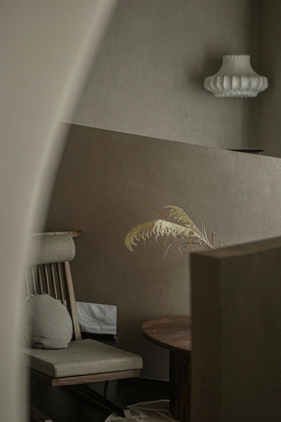 为保持空间主基调的完整性,也为了预算考虑,极为克制的让艺术涂料贯穿所有的空间,成为类似一张“旧宣纸感”的基底画布,涂料内的骨料加入也更加深了这种手工造纸感。