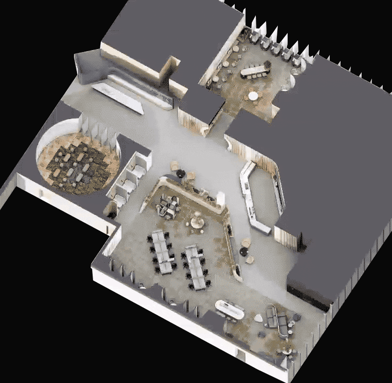 动线由室内核心自然延伸,空间如宇宙初爆般向外铺展。行至其中,不同尺度、各具特质的空间逐步释放,形成持续生长的空间场域,指引着访客缓步走向室外露台。