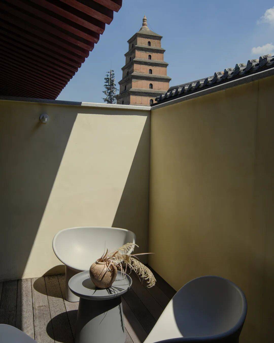 观塔:最大化保留观塔房型,露台 / 飘窗可直面大雁塔,夜景灯火与庭院光影交融。