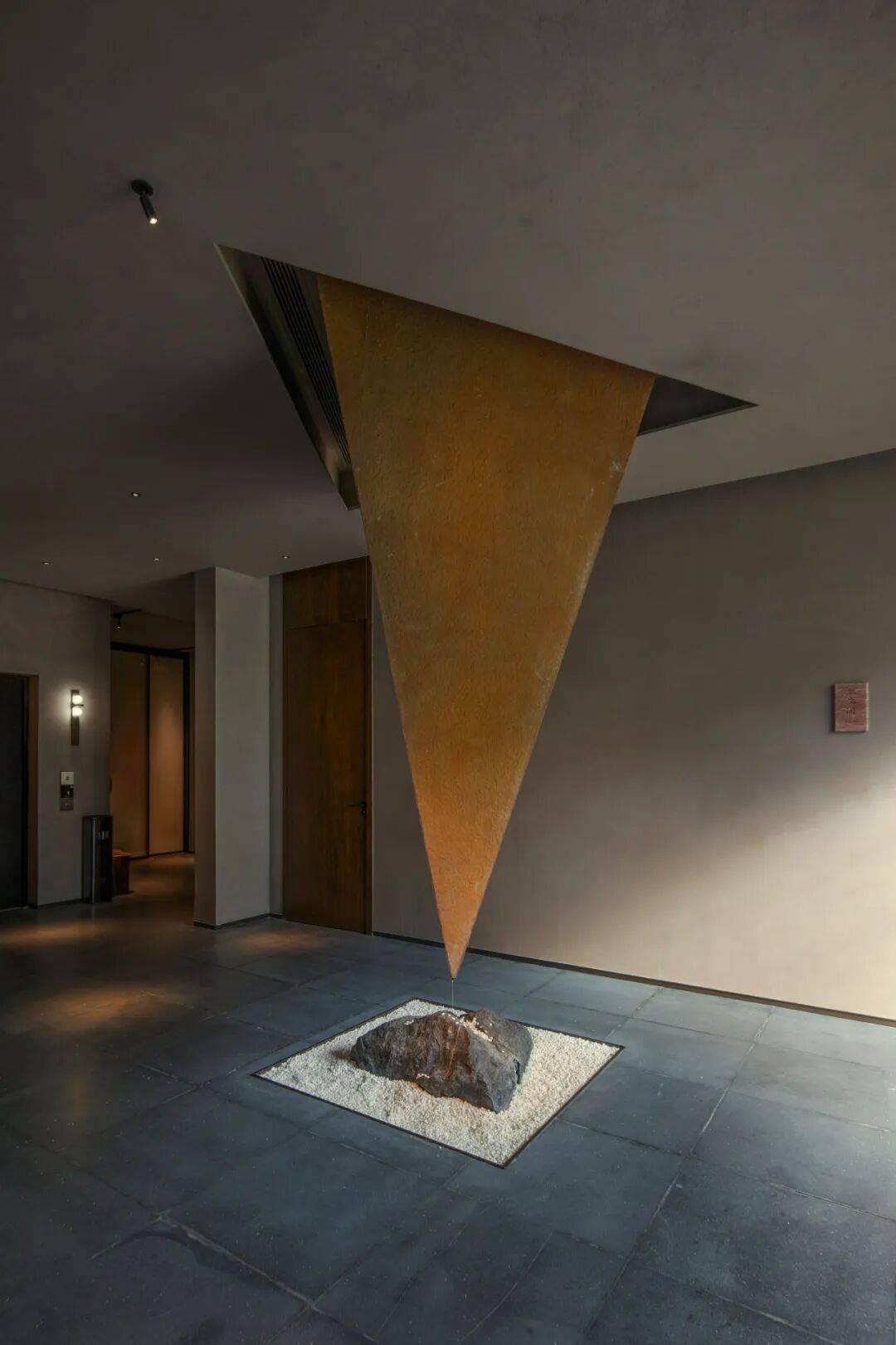 大雁飞过俯瞰的自然意向成为本次设计的主旨,汲取“谷”、“水”、“石”、“光”、“雾”等自然元素主导空间分区设计,各公共空间独有的自然设计属性是为了让空间幻化成为或高或低,或明或暗,或流线或折线,或嶙峋或狭窄的山谷、溪流、巨石、天光或浓雾。