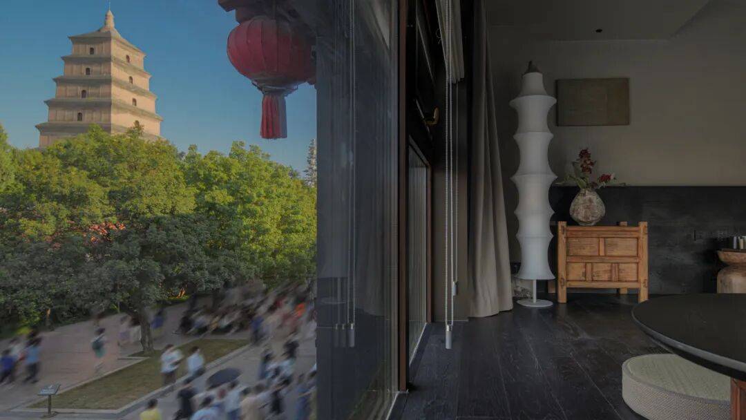 核心定位:距大雁塔约 200 米,3000㎡双回形独栋建筑,仅设 30 间客房,主打 “闹中取静” 的唐风禅意隐世民宿。