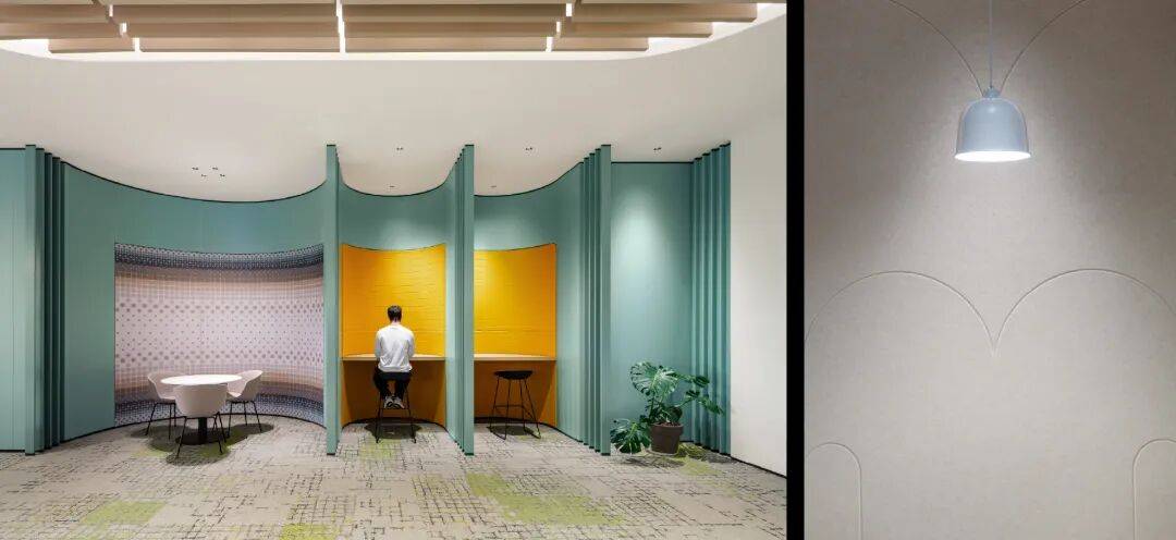 社交区是灵活设计的典范,半开放的格局让它可静可动:既可以是独处专注的静谧港湾,也能成为联结交流的活力社交场。设计的关键,在于让两种状态互不干扰、自然共存——高效的工作日常,既需要深度专注的沉浸时刻,也离不开彻底放松的解压时光。