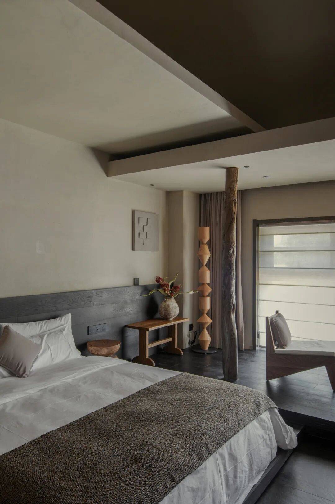 整个二层的设计关注材质的纯粹性与空间丰富性的关系,且极力保持氛围与情绪的平衡感,能让空间尽善尽美地呈现于眼前。遵循原有建筑的结构和肌理的基础上,注入新的元素,新的内廷与廊道,增加二层不同视角的动线,重新赋予老建筑新的活力,从而建构丰富的层次与秩序,打造自然元素的生活美学。各主题住宿区相互独立又彼此联系,满足住客不同功能需求下的情景切换。