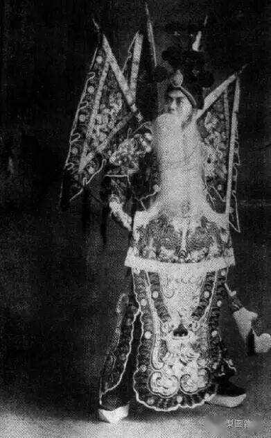 余叔岩(1890–1943):余派创始人,谭鑫培衣钵传人。《定军山》黄忠戏装照,身段挺拔、眼神锐利,武生气度十足。