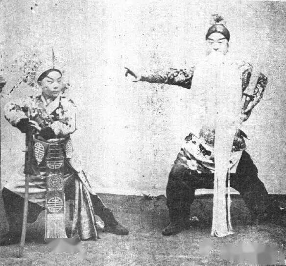 俞菊笙(1838–1917):武生鼻祖,开创 “俞派”。与余玉琴合演《青石山》剧照,气势磅礴、功架严谨。