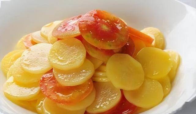 三原色法则:番茄炒土豆片(红+黄+绿香菜)