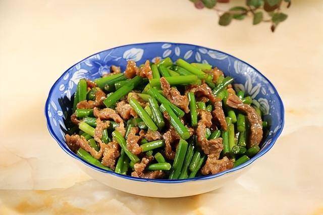 脆嫩组合:蒜苔炒牛肉(牛肉的嫩+蒜苔的脆)