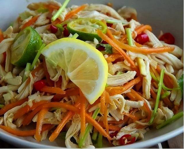 推荐菜品:柠檬手撕鸡(鸡肉+柠檬)
