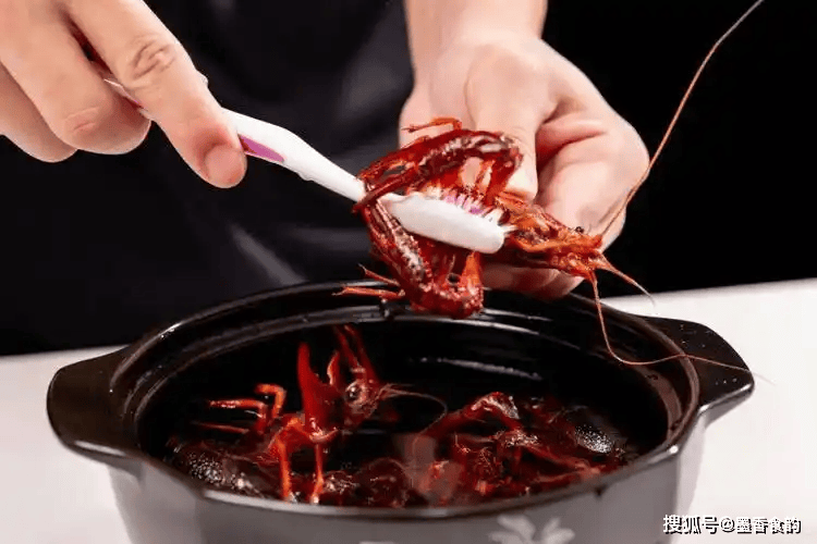 第二步:刷洗腹部(每只都要刷) 。泡好的小龙虾捞出来,找一个旧牙刷(别用新牙刷),手指捏住虾头,把小龙虾翻过来,流水下重点刷洗腹部、虾钳根部和头身连接处。这几个位置最容易藏污纳垢,刷到腹部发白才算干净。