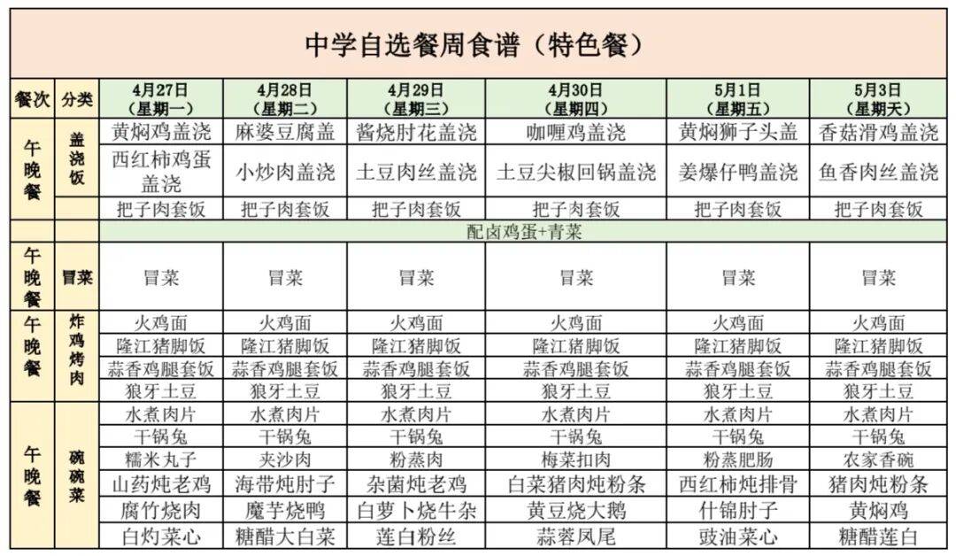 中学自选餐