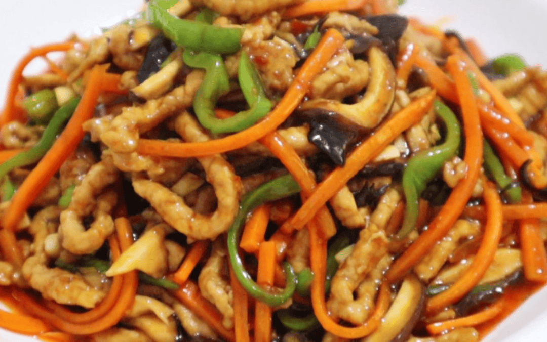 晚餐:米饭、花生焖肘子、山药炒肉片、鱼香肉丝、炝锅藕丁、清炒下锅耙、黄瓜汤