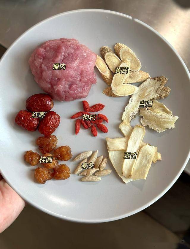 瘦肉:瘦肉富含蛋白质等营养成分,是身体修复和生长的重要物质基础。蛋白质可以为气血的生成提供原料,与黄芪、当归搭配,共同起到滋养肝血、安神助眠的作用。