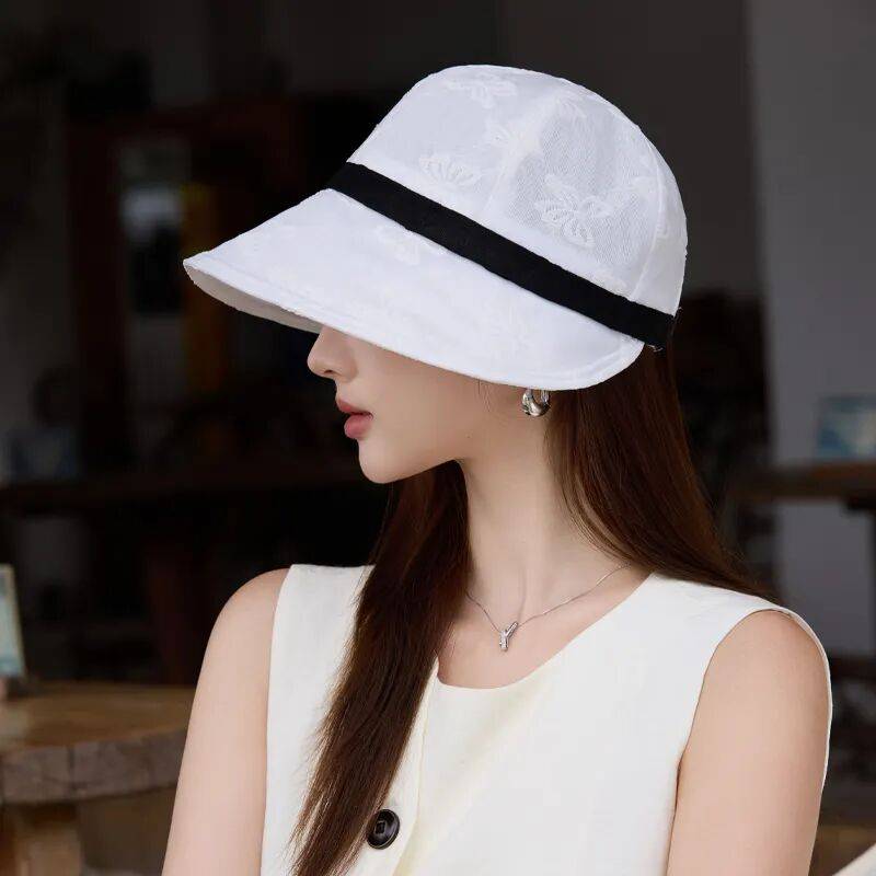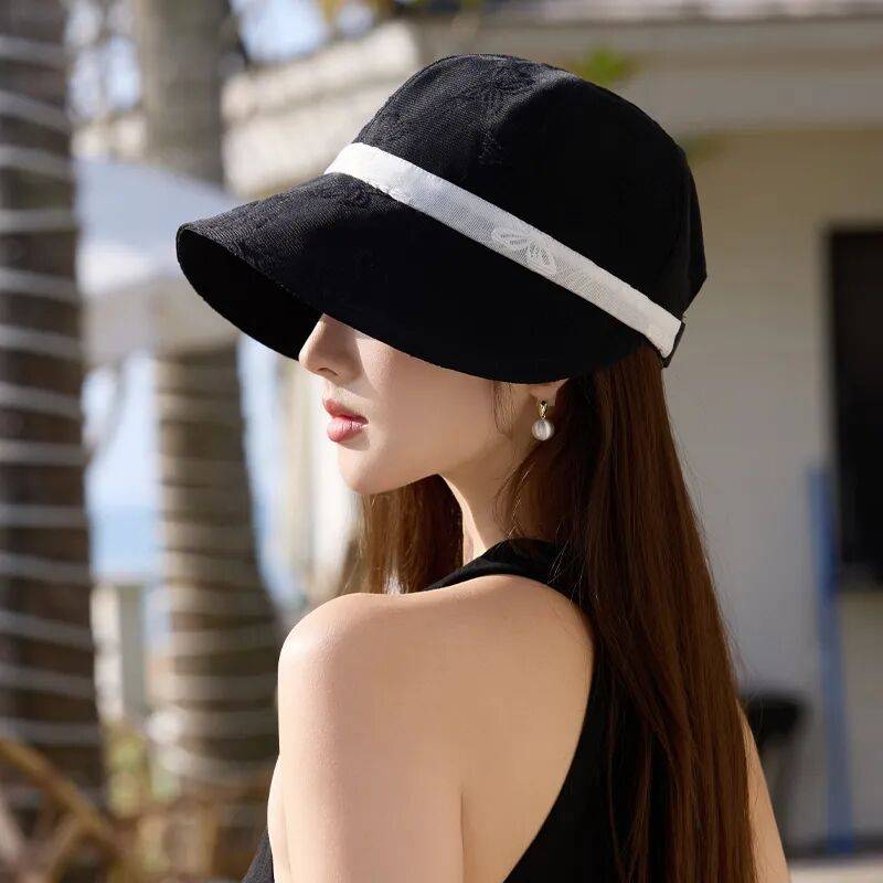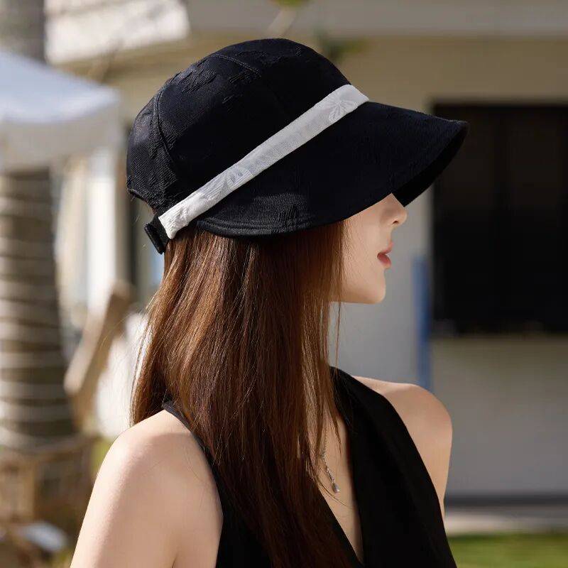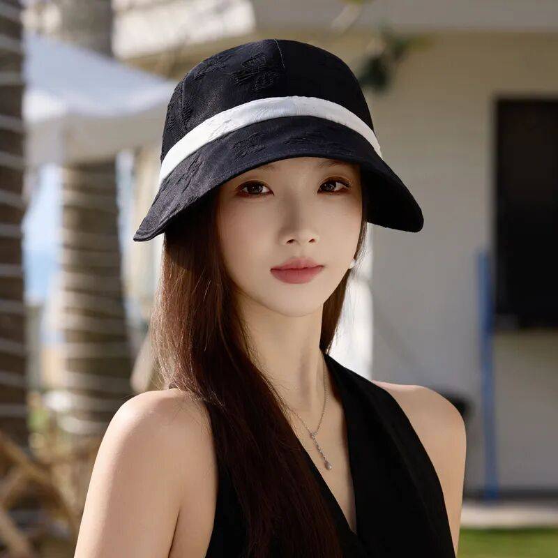 那顶帽子堪称时尚与实用的完美结合。帽顶的薄薄网纱带有若隐若现的花纹,精致感十足。中间黑带子的设计,瞬间营造出老电影里大小姐的范儿,浓浓的赫本风,复古又时髦。帽檐大小适中,既能有效遮脸防晒,又不会遮挡视线。戴上它,整个人显得温柔又有气质,拍照特别出片。无论是旅行凹造型,还是日常素颜出门防晒,它都是绝佳选择。帽型挺括自然,走线工整细致,不仅提升了整体穿搭的时尚感,还能解放双手,堪称懒人神器。