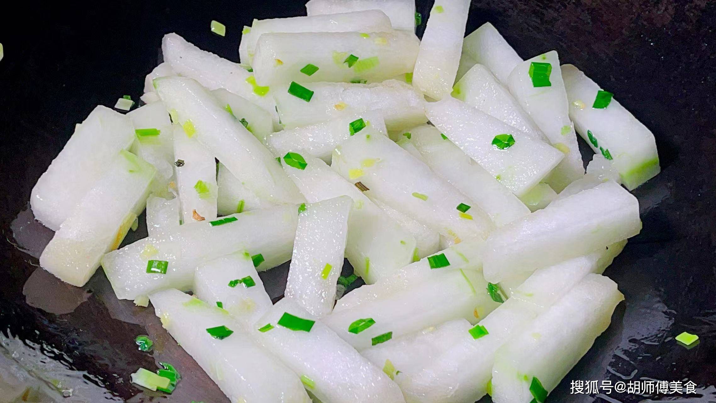 第三步:盖上锅盖,将冬瓜焖煮10分钟,然后再把食盐、虾皮放入锅中,大火翻炒半分钟后,最后撒上一点葱花即可食用。