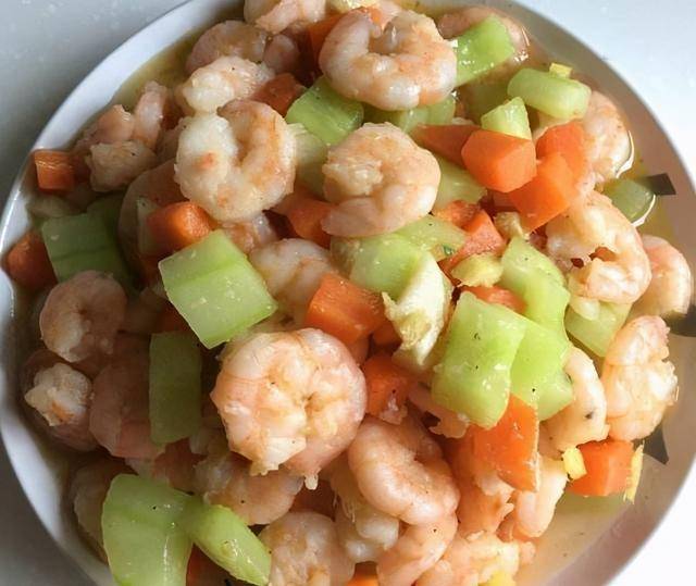 材料:虾仁,黄瓜,姜,葱,糖,盐,酱油,淀粉