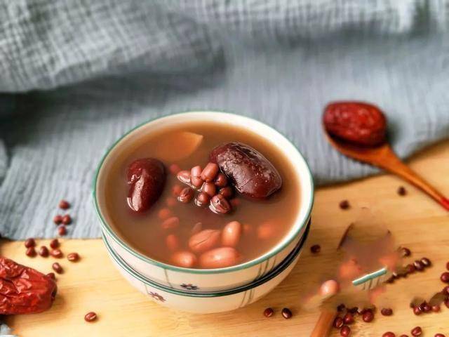 材 料:红豆50克,红枣5颗,红皮花生50克,黄冰糖30克
