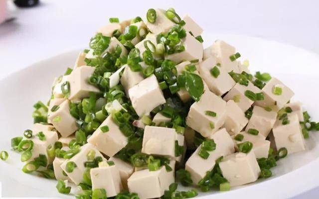 食材:豆腐300克,葱30克,精盐5克,味精3克,香麻油4克,精制油30克