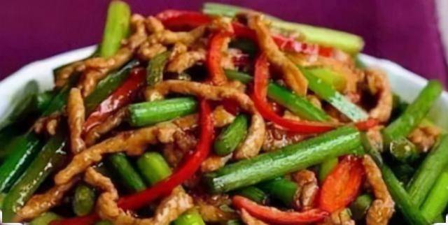食材:后腿瘦肉、蒜苔、姜、蒜、花椒、干辣椒、料酒、酱油、生粉;
