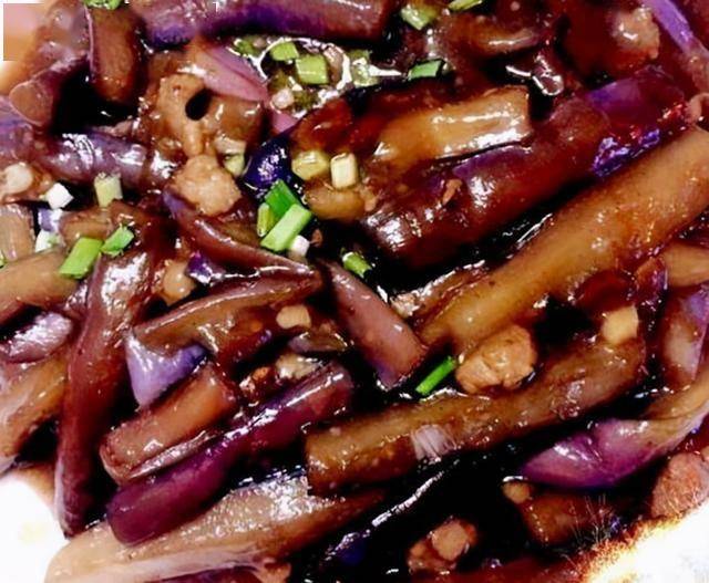 3 锅内加油烧热,爆香蒜末、葱花, 倒入黑木耳小朵翻炒片刻,然后倒入做法1中的味汁,以大火烧开, 下入茄子块翻炒片刻、待汤汁将干,淋入香油拌匀即可。
