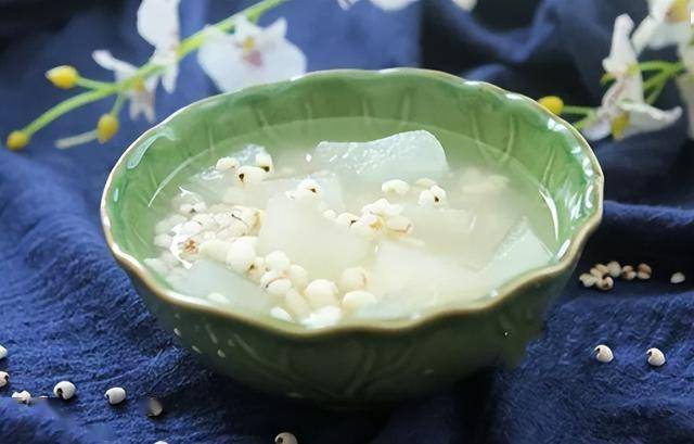 3、冬瓜与薏米一起丢到汤煲里大火烧开后小火炖一个小时、或者1个半小时;