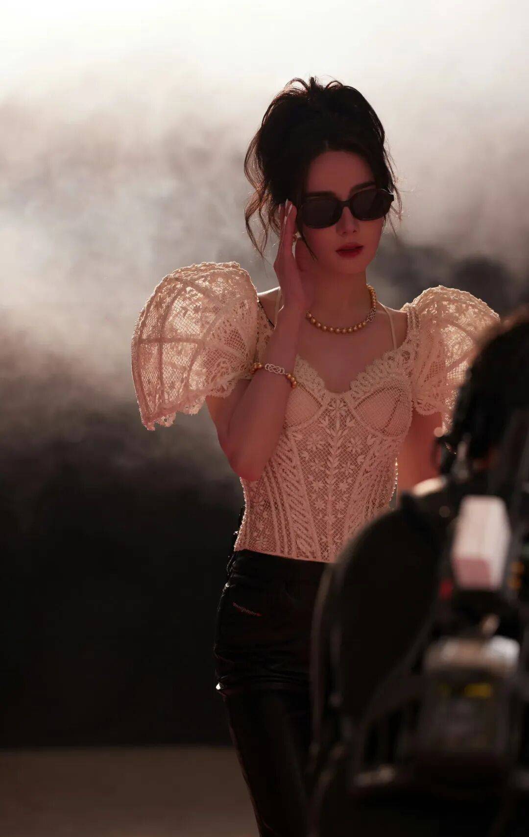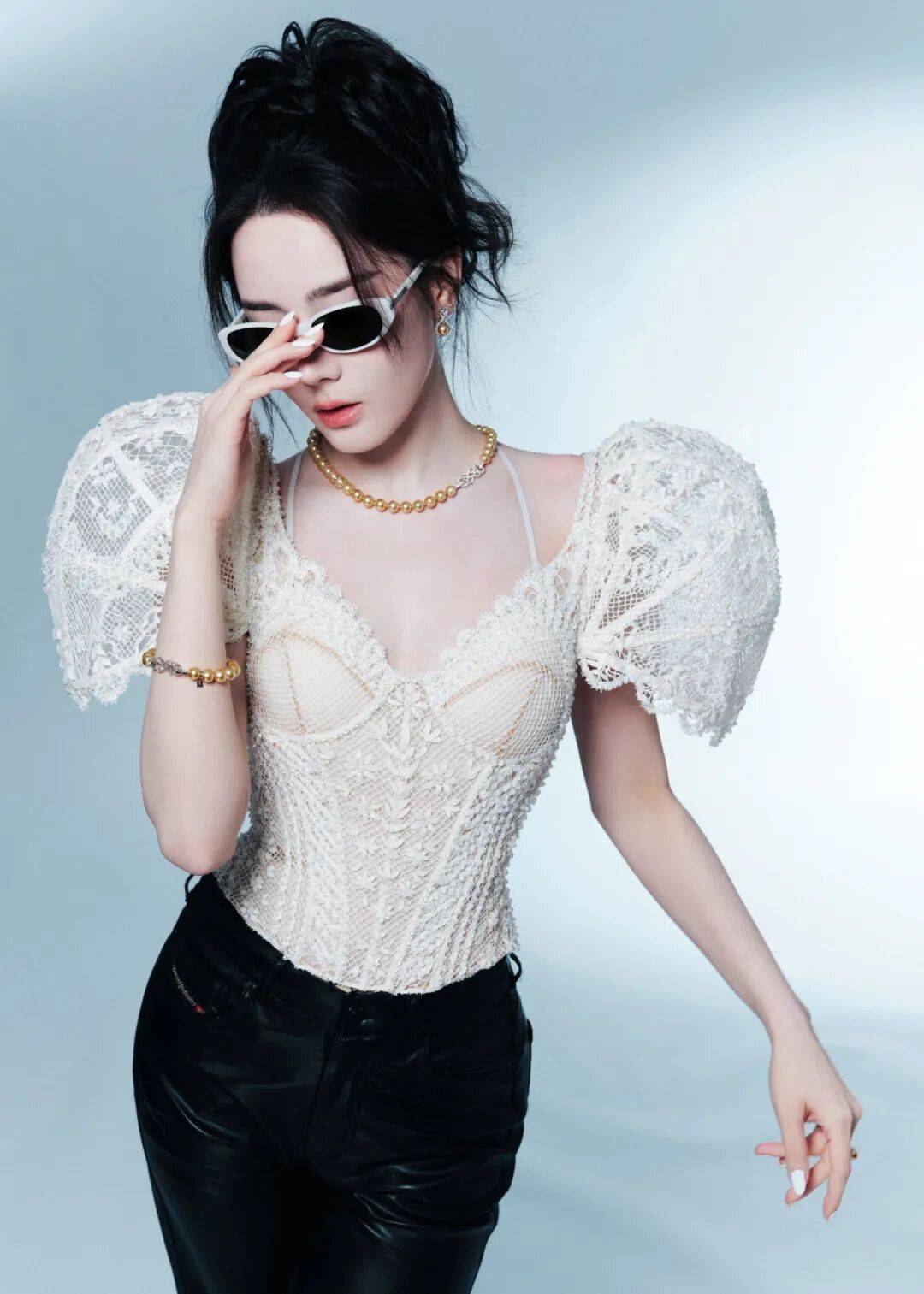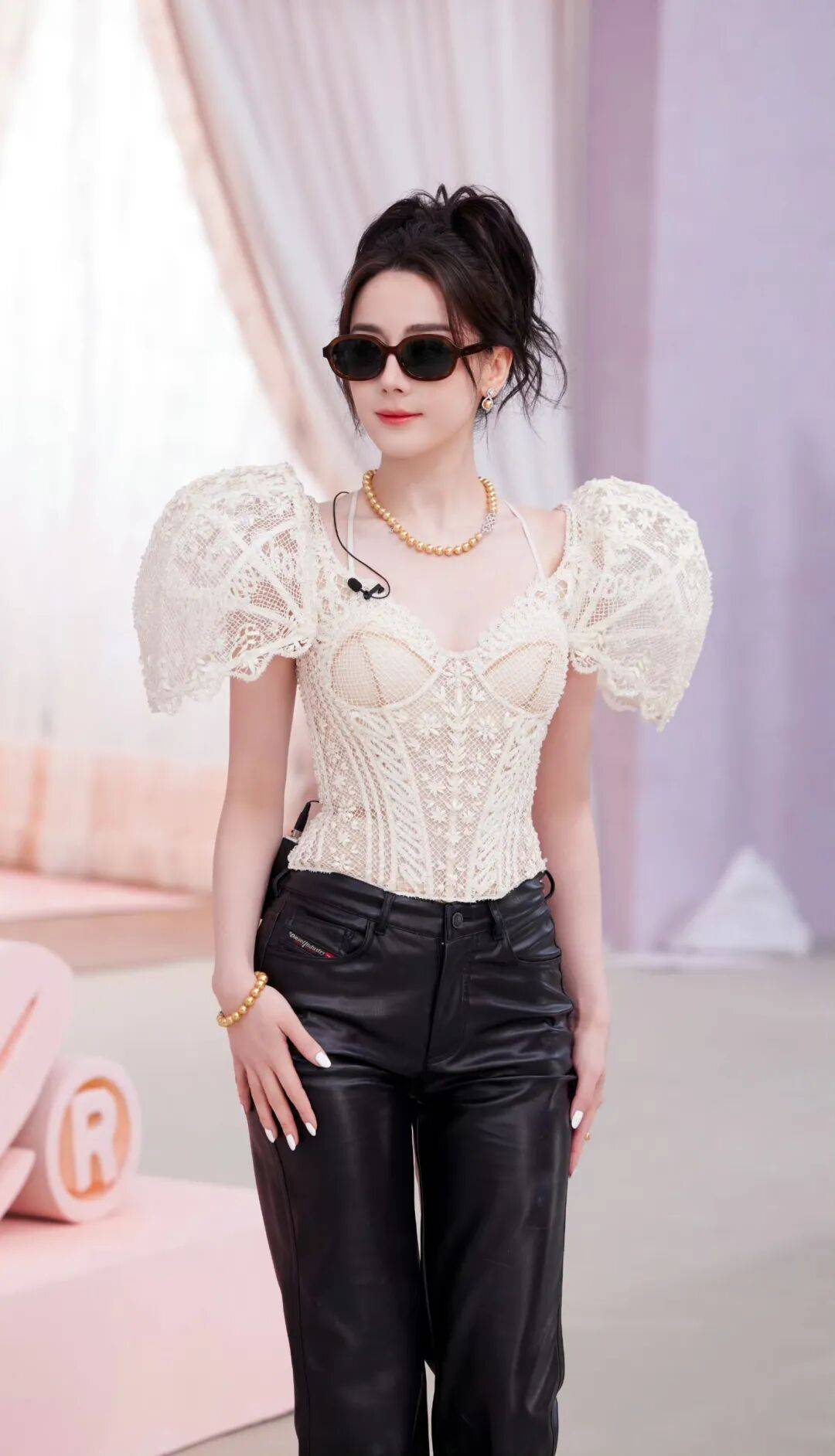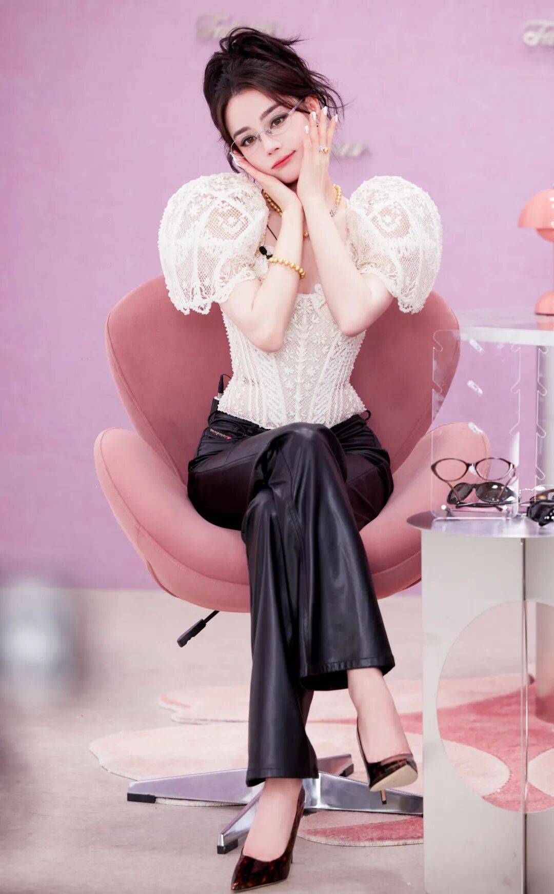 热巴这套蕾丝+皮裤的精髓,就是“上柔下硬”的反差感,完美中和甜腻与硬朗,日常通勤、约会都能穿。