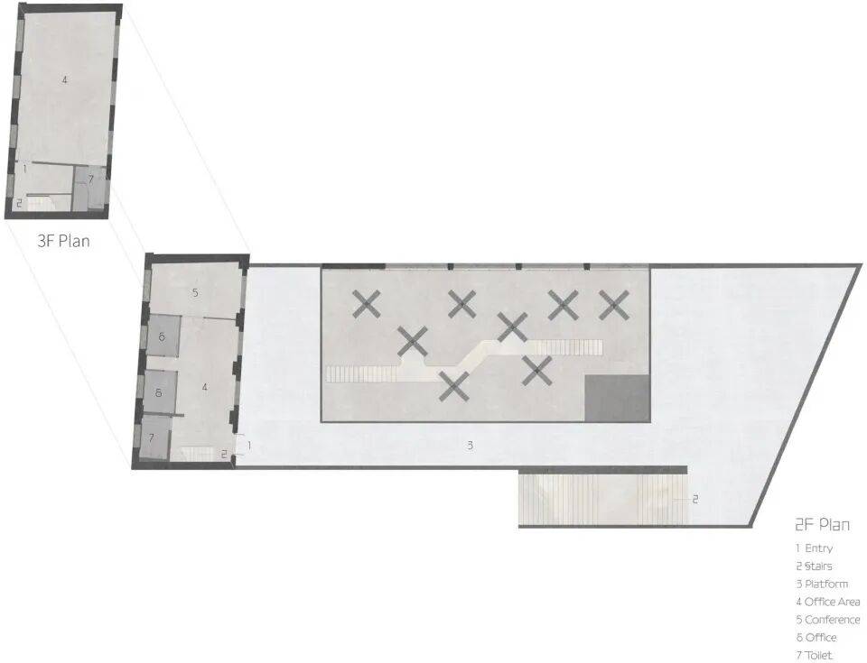 上海静安区项目以“复合功能整合”为核心,通过改造三栋不同建筑(三层砖混、厂房、单层建筑),构建零售、展示、餐饮、办公一体化的城市空间。栋栖设计强调交互性与未来感,例如: