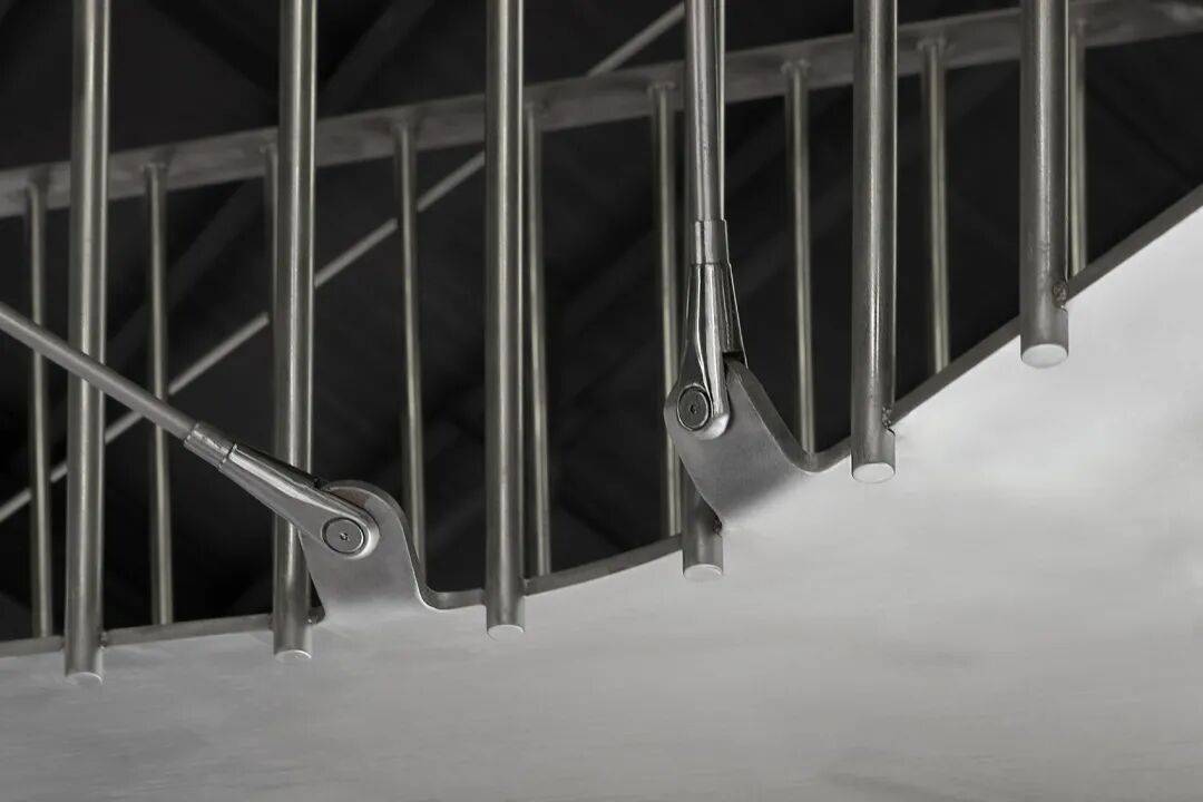 不锈钢的多元应用:12mm厚钢板用于天桥踏步与桥身,拉索、栏杆、灯管固定件均采用不锈钢圆杆,形成视觉统一性。