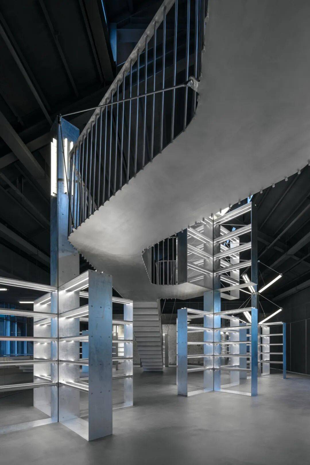材料真实性:大量使用不锈钢、热轧钢板等金属材质,保留原始质感,体现统一性与多样性共存。