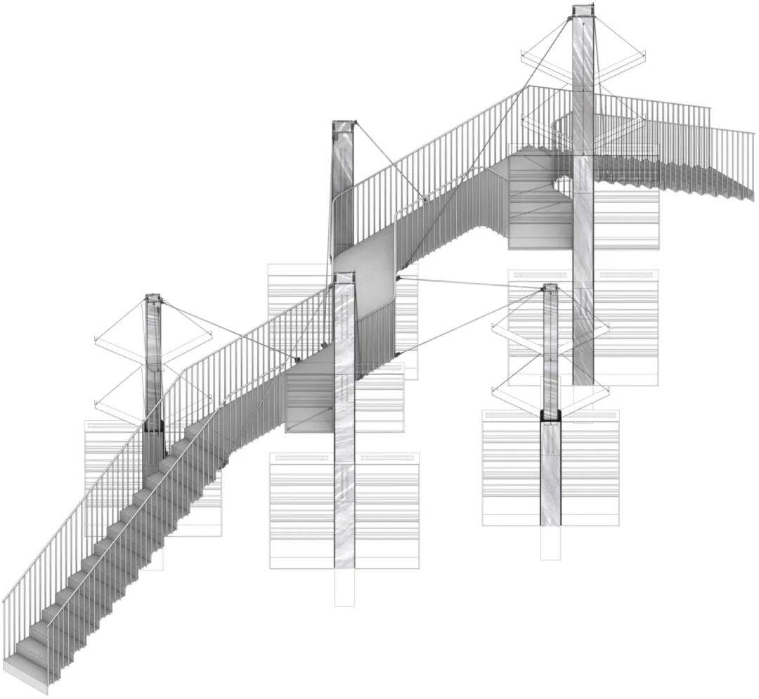 防滑与安全设计:天桥踏步前端用一字螺丝防滑,靠墙金属网嵌入T形不锈钢条,兼顾功能与美学。