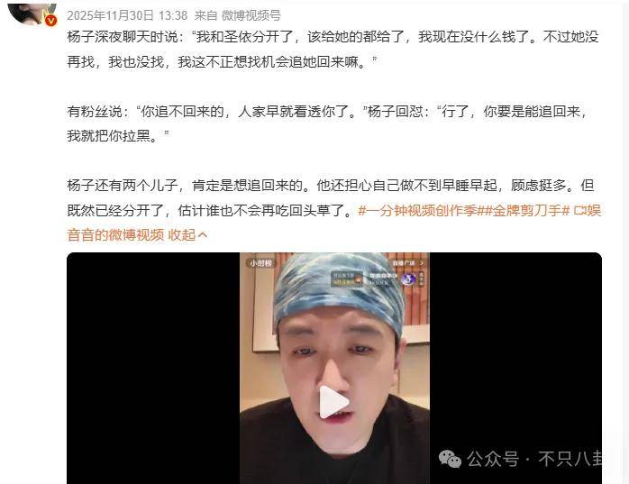 杨子在婚姻中的表现实在难以让人恭维。在与黄圣依婚姻存续期间,就和李隽子有了感情纠葛,甚至让李隽子怀孕生子。从时间线来看,2024年8月杨子还在和黄圣依录制《再见爱人4》,而按时间推算李隽子此时已经怀孕,这充分说明杨子一边维持着与黄圣依的婚姻表象,一边却和李隽子发展新感情,这种行为严重违背了婚姻的忠诚原则。