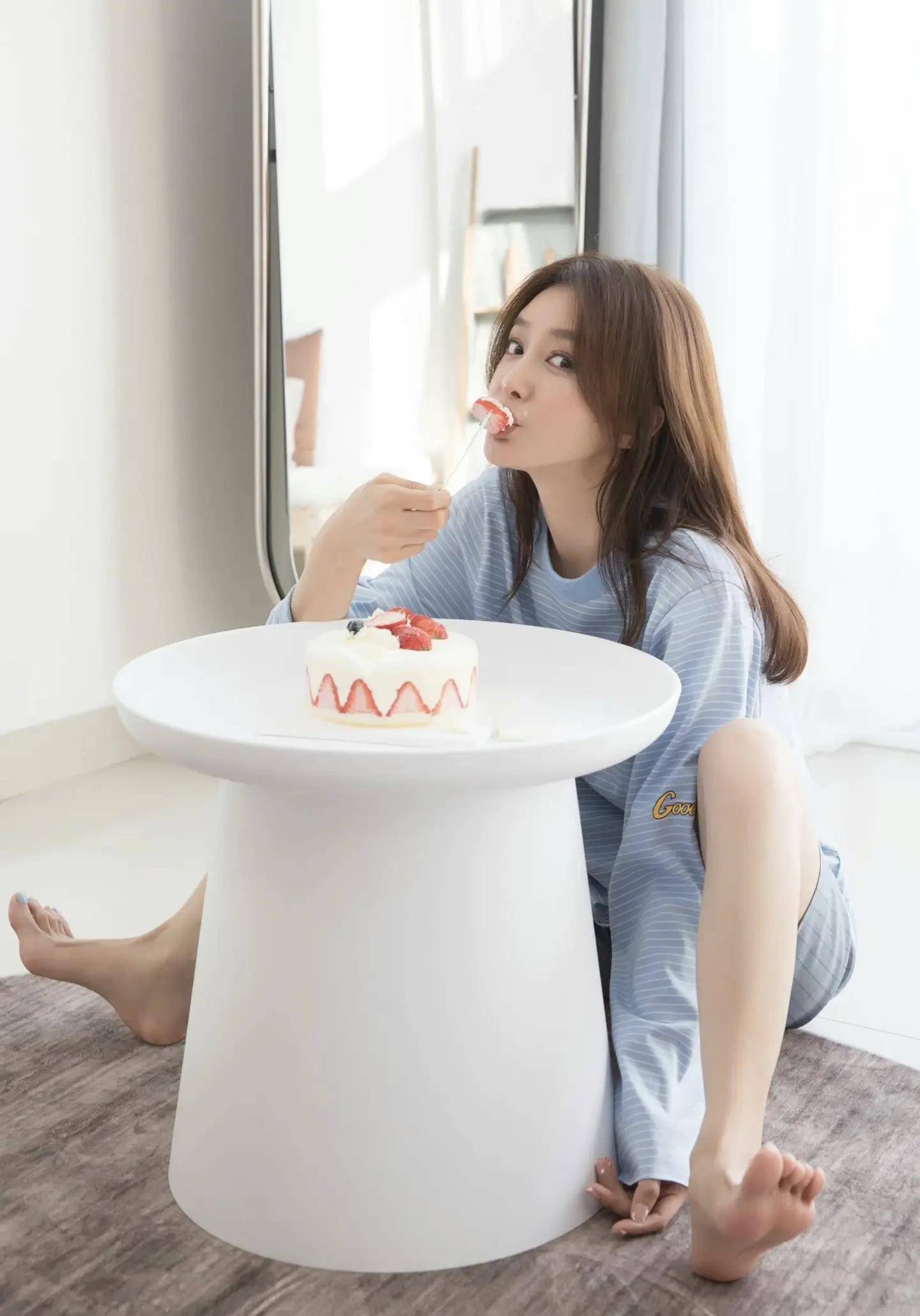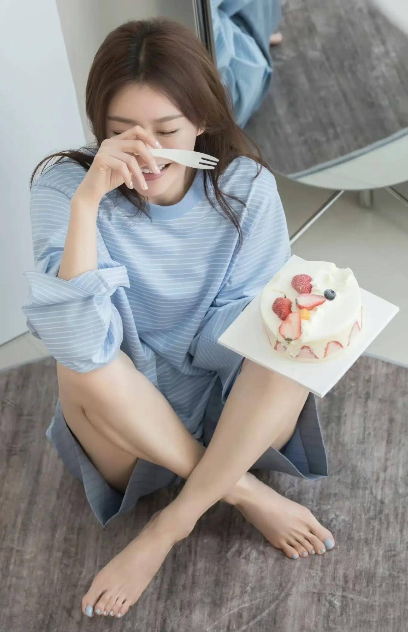 家人们谁懂啊!刷到秦岚这组居家睡衣图我直接原地沦陷,这是什么冻龄女神!蓝色条纹睡衣搭配草莓蛋糕,松弛治愈氛围感直接拉满,尤其是那甜美的笑容,我真的会反复观看!