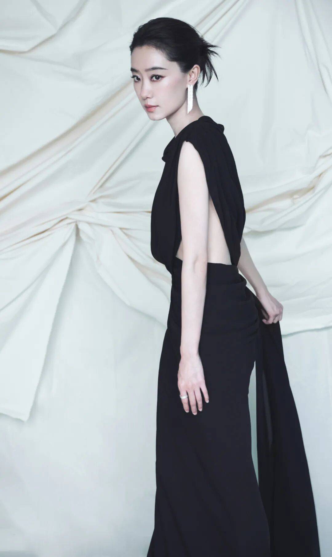 斜肩和侧腰的露肤点精准又克制,这种“犹抱琵琶半遮面”的性感,比大面积的暴露更有韵味,也更显高级。