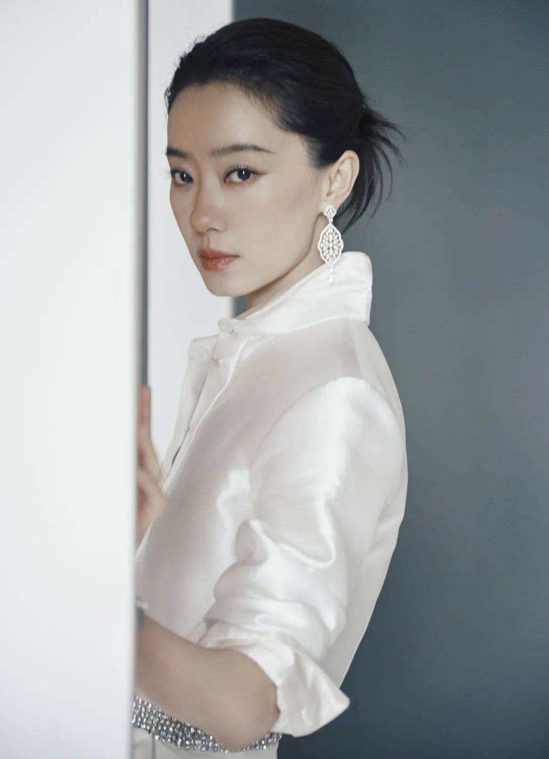 在搭配上,张小斐更是将“克制”二字贯彻到底。发型选择了干净利落的低盘发,将五官完全展露出来,突出了她清冷又坚定的面部线条。