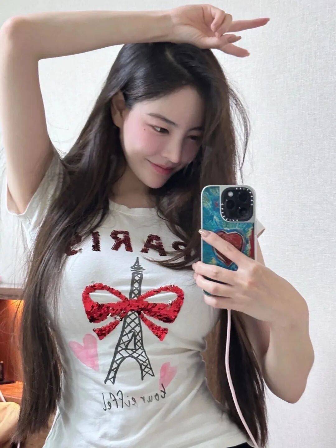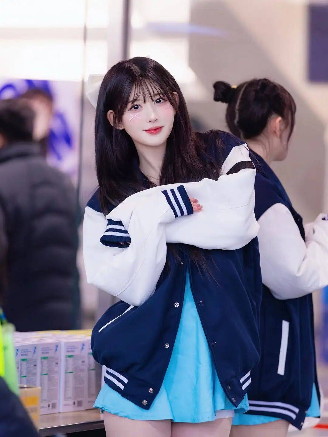 搭配的黑丝更是点睛之笔,细腻的面料贴合双腿,衬得肌肤愈发白皙,将黑丝长腿的纤细笔直完美展现,与包臀裙相辅相成,让“翘臀、黑丝、包臀裙”成为她的专属代名词,甜辣感瞬间拉满。这种搭配既符合啦啦队的活力属性,又融入了韩系时尚的精致感,简约却不普通。