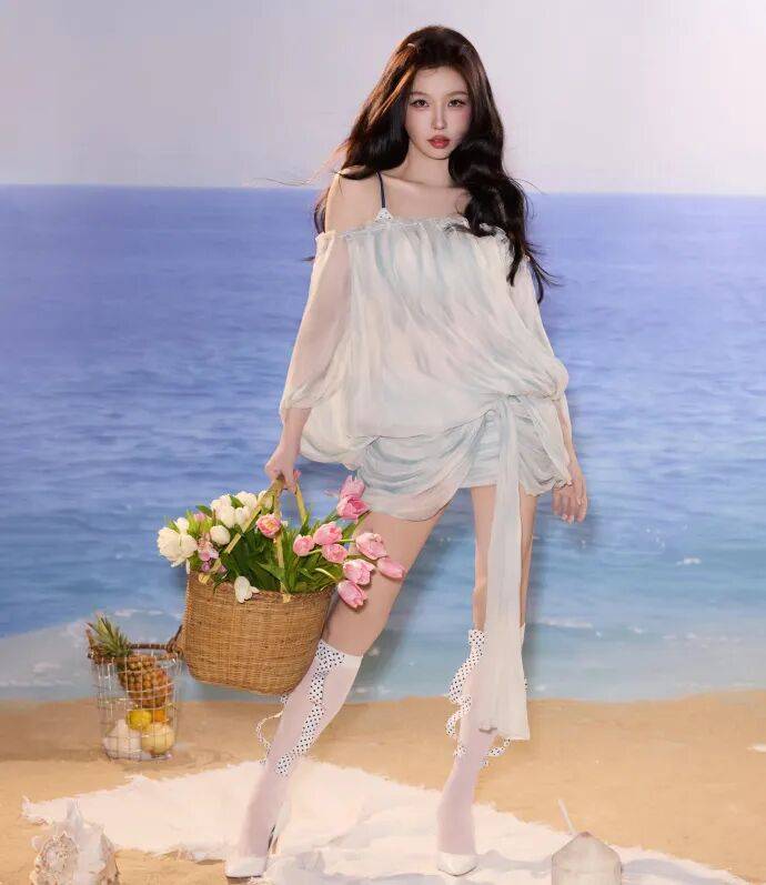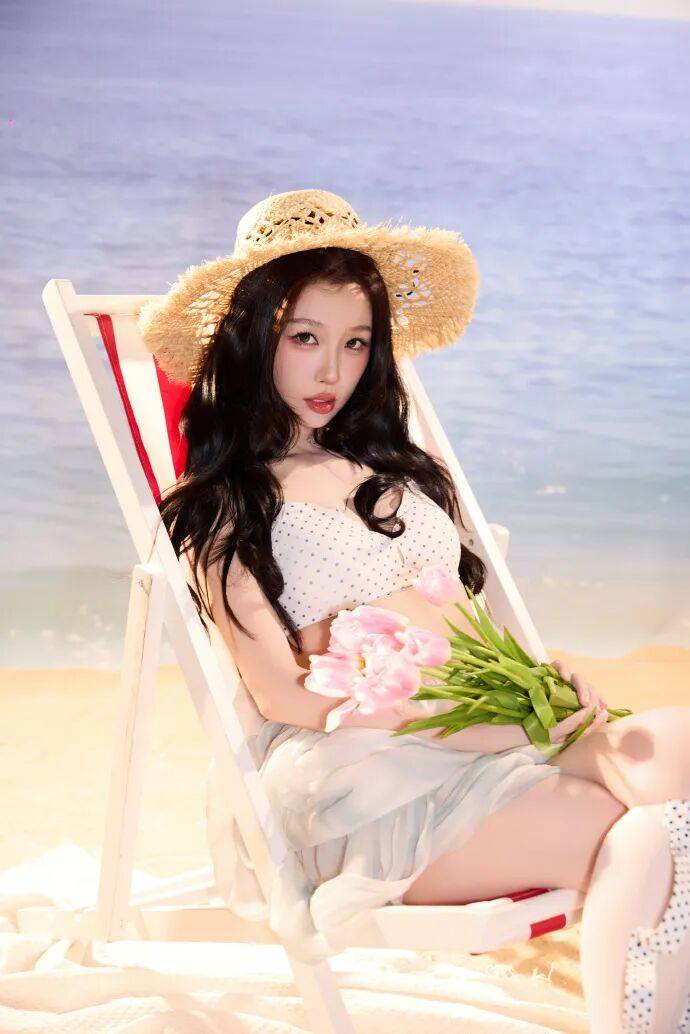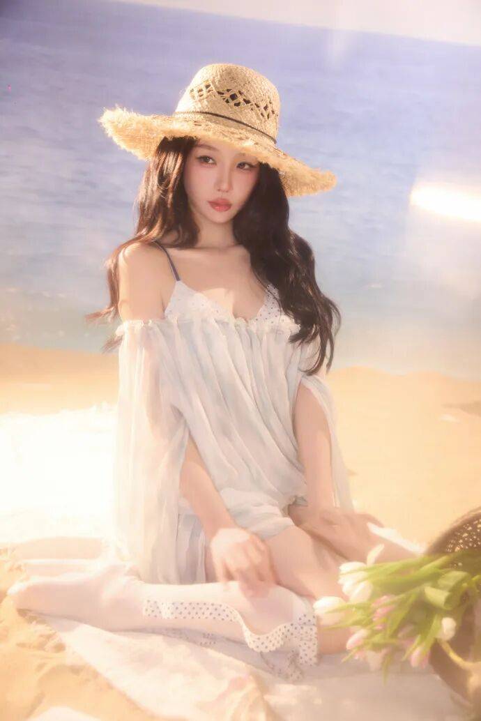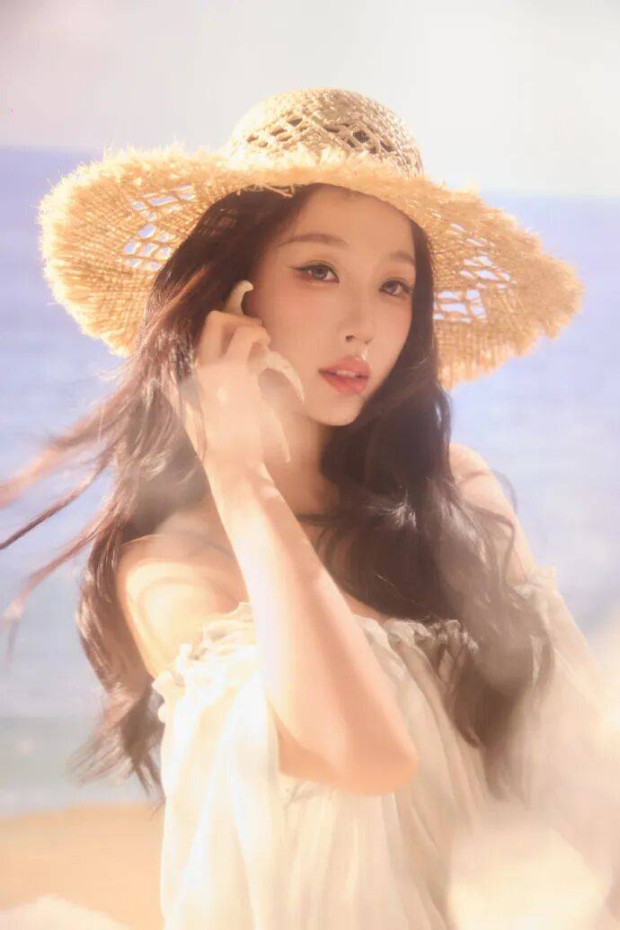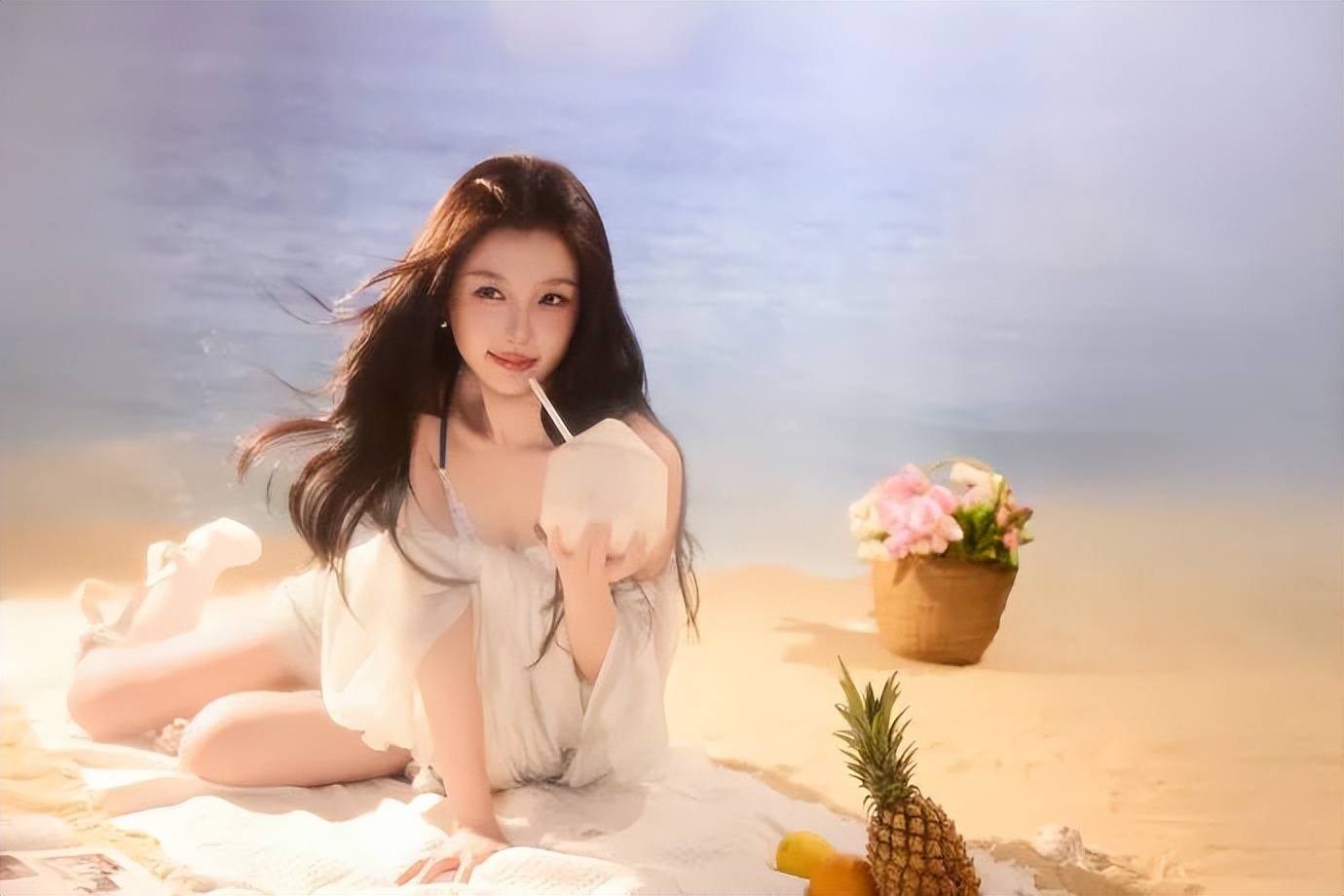 4月27日,虞书欣工作室公开的活动图中,她魅力十足。穿白色内衣搭配短裤,头戴草帽,俏脸清丽,长发飘逸。跪坐在地上时,修长大美腿若隐若现;特写美图中,微微一笑很倾城;单手拿椰子喝汁液时,露出白皙香肩和大美腿,肌肤娇嫩如雪。她五官精致,浓眉大眼,唇红齿白,笑容甜美,又纯又欲的造型美得让人窒息,展现出独特的性感撩人魅力。