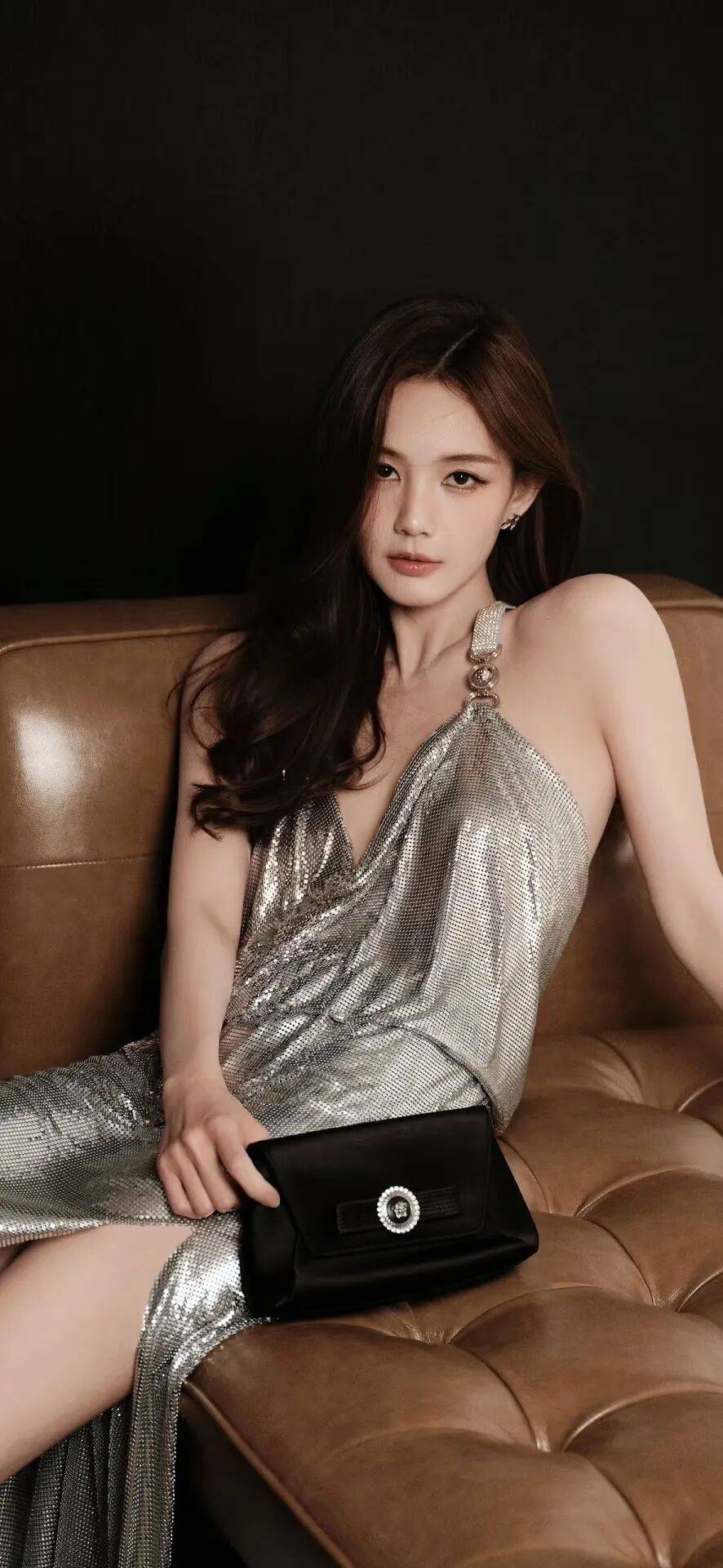 那张银色亮片裙的照片,我盯着看了好久。细碎的银箔像把整条银河揉碎在了裙身上,随着她的动作晃出粼粼的光,配着哑光黑的手拿包,冷调的碰撞刚好压下了亮片的浮夸。棕色大波浪松松地卷着,她举着手臂把头发挽到脑后,指节漫不经心地弯着,眼尾微微上挑,眼神里没有刻意讨好的软,反倒透着点“我才不管你怎么看”的不羁,像刚唱完压轴曲的摇滚主唱,后背还沾着舞台的碎光,气场足得能镇住整条街。腰腹的线条顺着裙身的剪裁流畅地落下来,小腿的弧度被亮片衬得又直又匀,偏偏妆容是跳脱的暖橙调,唇色亮得像刚咬过一口蜜柑,眼尾扫了点细碎的金闪,耳朵上的金色圆环随着她的动作轻轻晃,冷艳里掺着点野,酷拽里又藏着点媚,看得人挪不开眼。