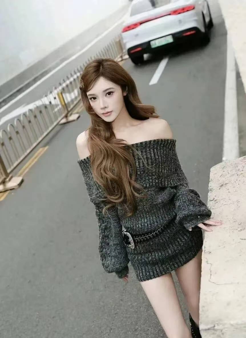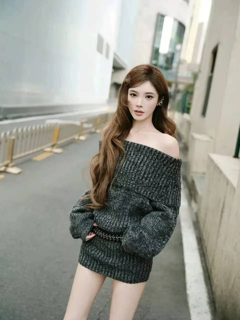 深秋的街头梧桐叶飘得正缓,暖金色的阳光斜斜扫过柏油路时,戴燕妮的身影刚从转角走出来,就成了整条街最抓眼的存在。她没有穿繁复夸张的礼服,只是裹了一身垂感极好的灰色针织毛衣裙,长度堪堪盖过大腿中部,松松软软的面料顺着肩线垂下来,没有刻意收腰的紧绷感,却恰好贴出了身形最流畅的曲线,远看像一团被风揉软的云,走近了才觉出藏在温柔质感里的凌厉气场——肩线挺得平直,脖颈自然舒展,哪怕只是随意走在路上,腰背也没有半分佝偻的疲态,整个人透着种不疾不徐的笃定。