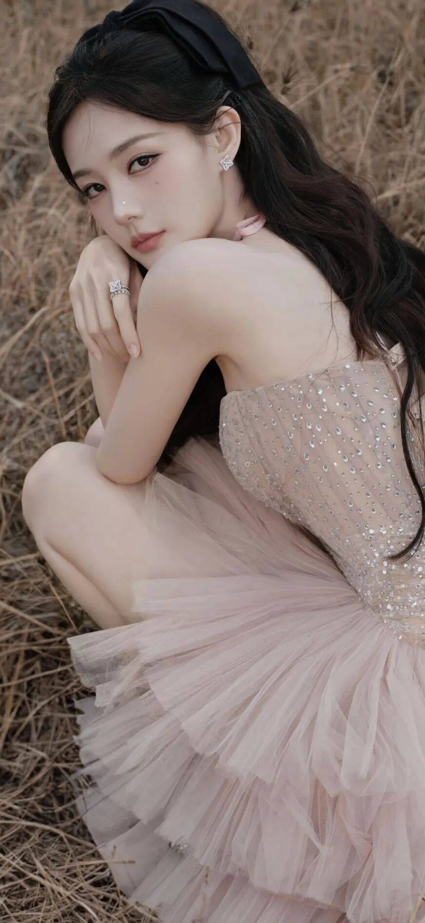 等翻到粉色包臀裙那张,整个人的心都软了下来。雾粉色的面料软得像春日里刚开的樱花,贴着她的身形垂下来,配着奶白色的细跟高跟鞋,连脚步都像沾了糖。她把头发低低扎成马尾,碎发顺着脸颊落在肩颈,手捂着嘴笑的时候,眼睛弯成了月牙,眼尾的笑意都快漫出来,干干净净的,像高中放学路上,抱着书站在梧桐树下等同伴的小姑娘,连风拂过她发梢的节奏都放轻了。这次的妆是软乎乎的粉调,口红是带着点水光的樱花粉,眼尾没有上挑的眼线,只扫了点浅棕色的眼影,手指上的银色细戒闪着细碎的光,没有半分明星的距离感,倒像是隔壁家刚下班的姐姐,拎着奶茶站在巷口跟你打招呼,甜得刚好,一点都不腻。